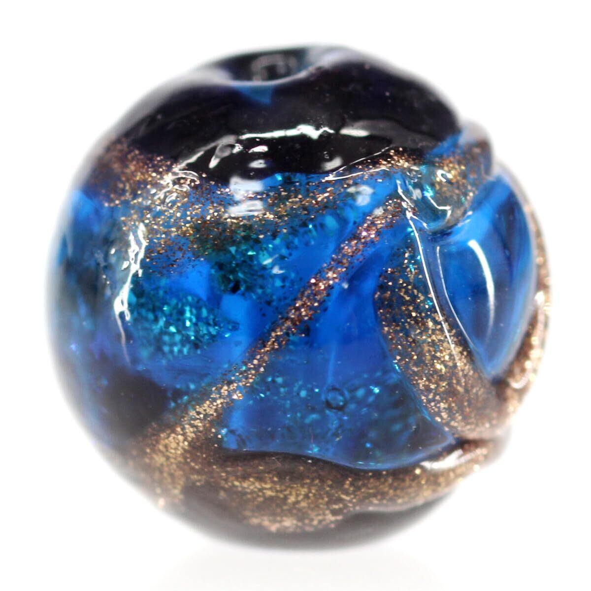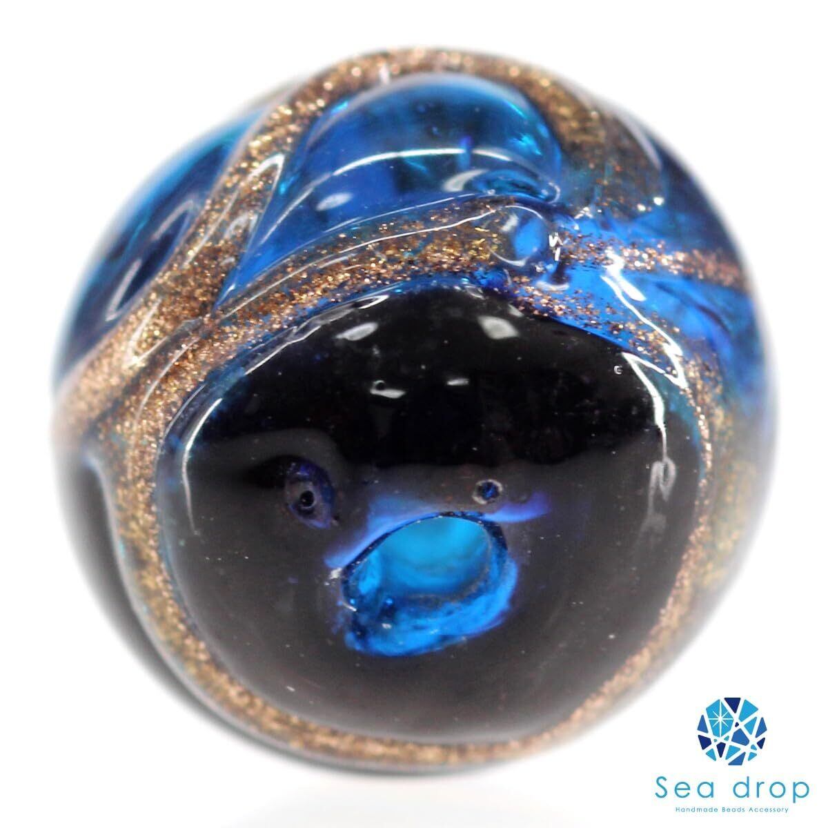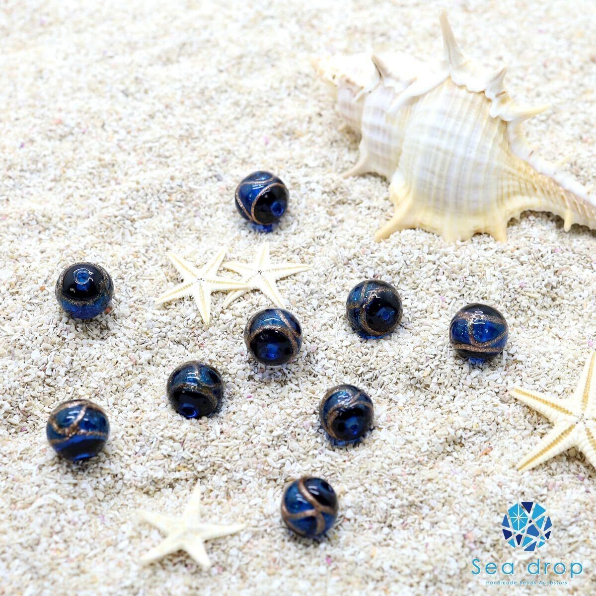 Sea drop とんぼ玉 ブルー ゴールドライン入り 10mm 粒売り 10粒 ガラスビーズ [225tt-10-10]