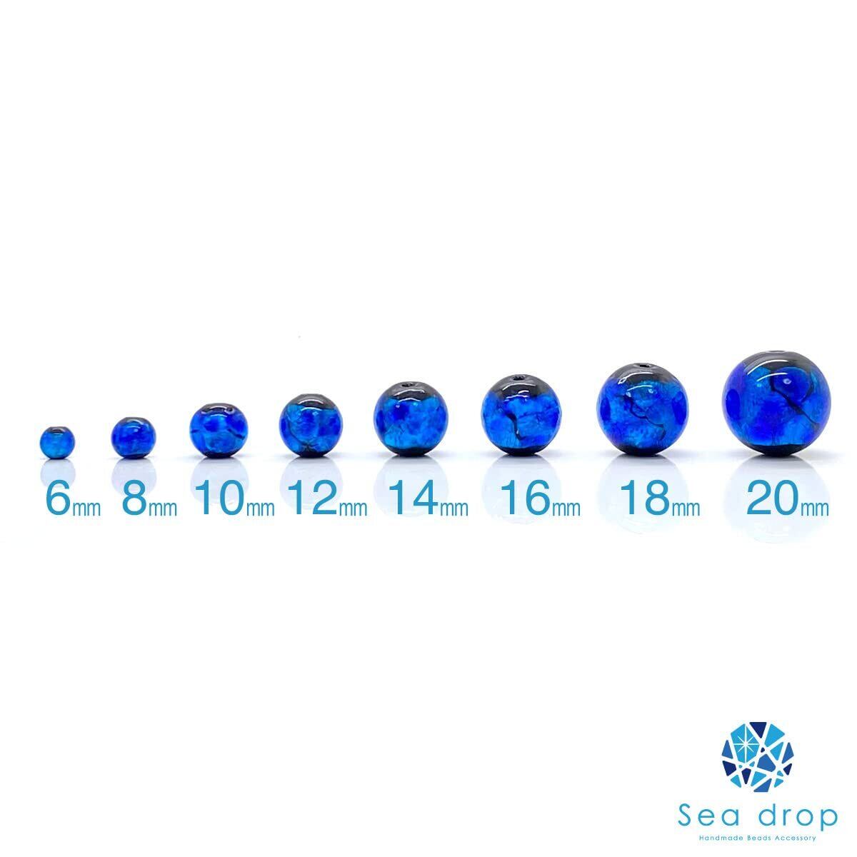 【上品なブルー】 海のパワーが詰まった深い青色が沖縄の海を感じさせてくれます。ガラス玉はカジュアルな装いはもちろん、エレガントなお洋服にも気軽に合わせることが可能です。品のある輝きが日々の疲れから心を解き放ちます。