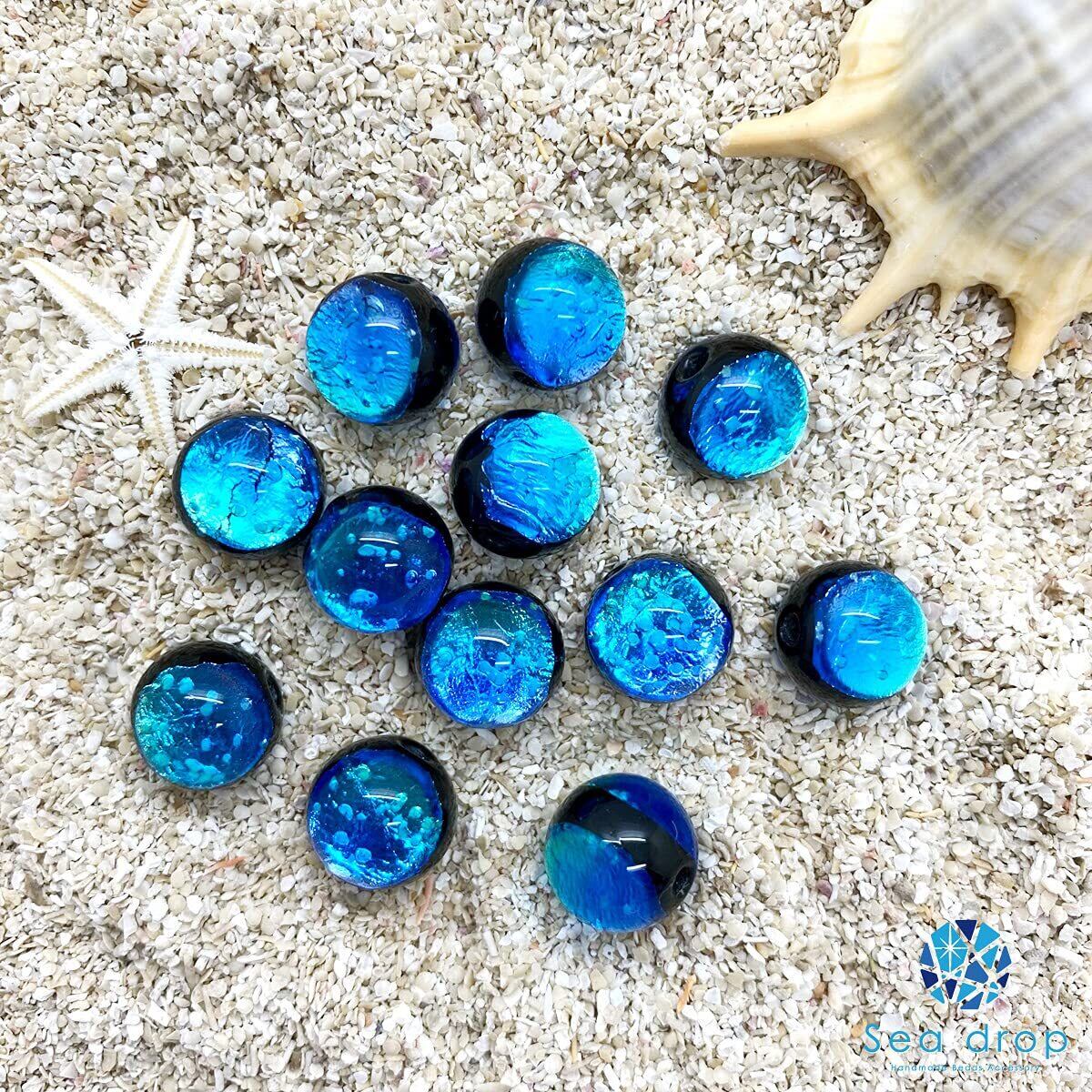 Sea drop 光る ホタルガラス イリオモテブルー 10mm 半連 21玉 約20cmビーズ 蓄光 とんぼ玉 [082htt-10]