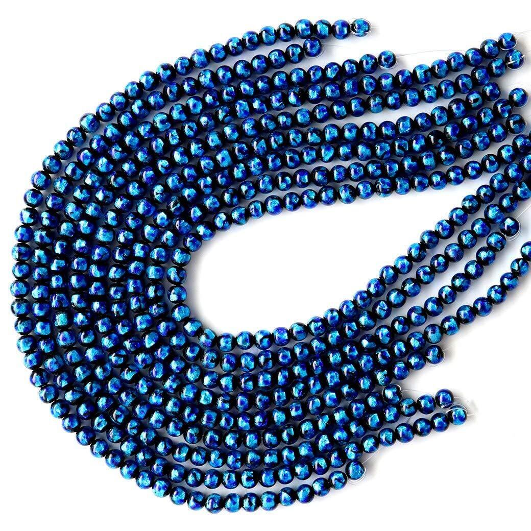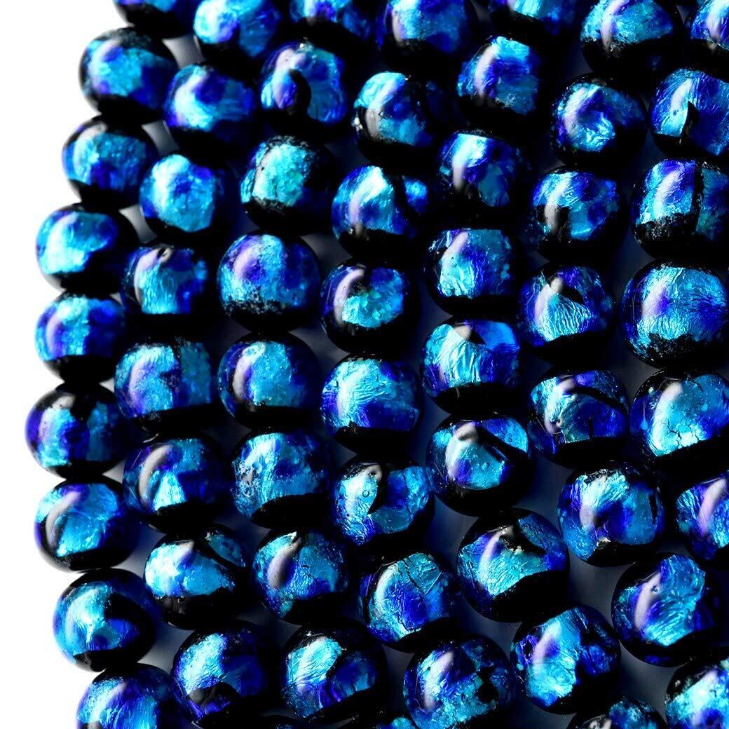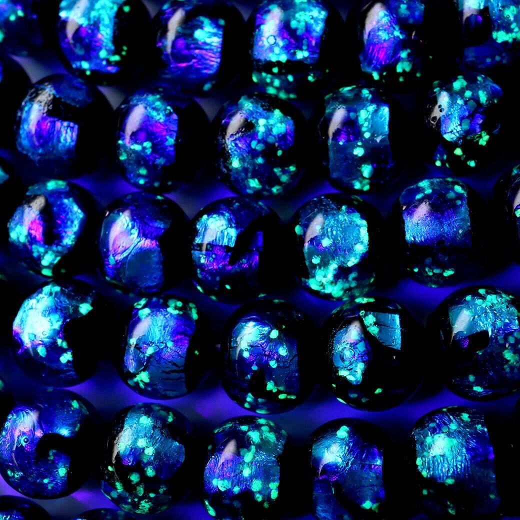 [GOLD STONE] 光る ホタルガラス ビーズ ブルー 8mm 一連 (52玉) 1本売り 長さ40cm とんぼ玉 沖縄 typeA 蓄光