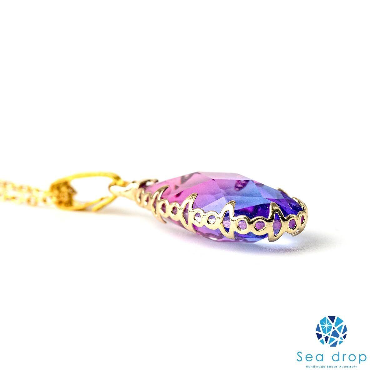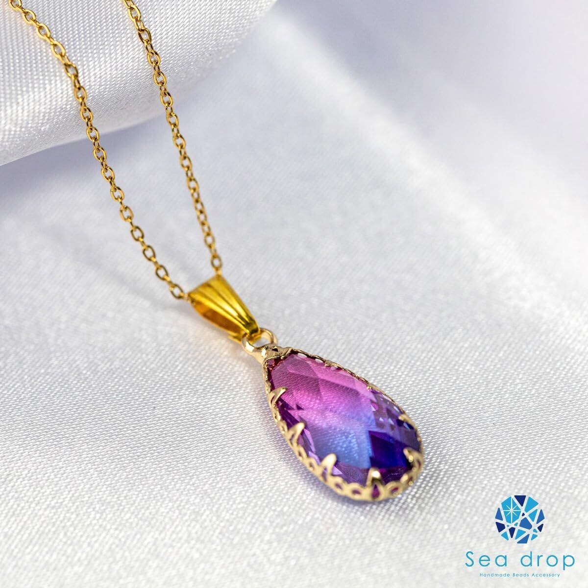 パープルのクリスタルガラスを使用した、しずく型のエレガントで魅力的なネックレスです。