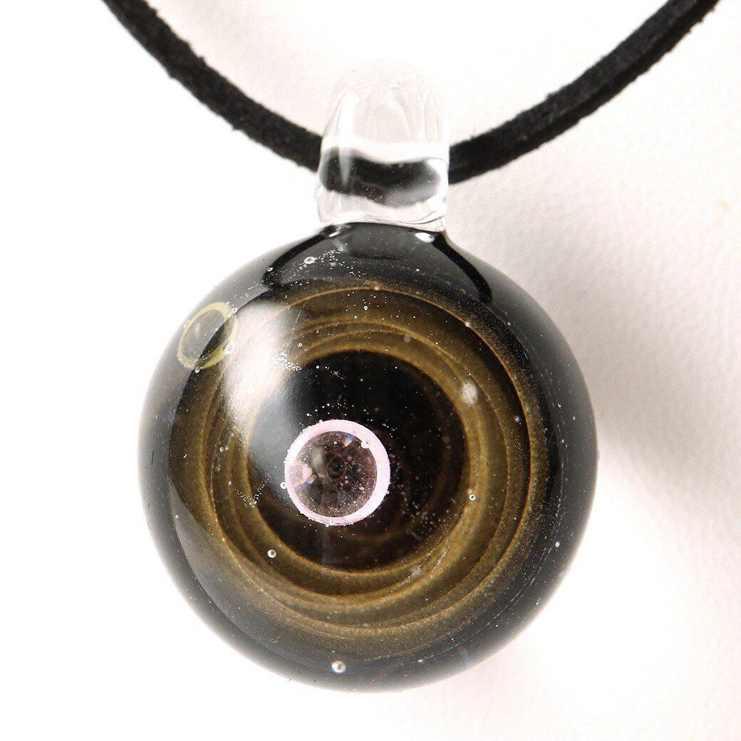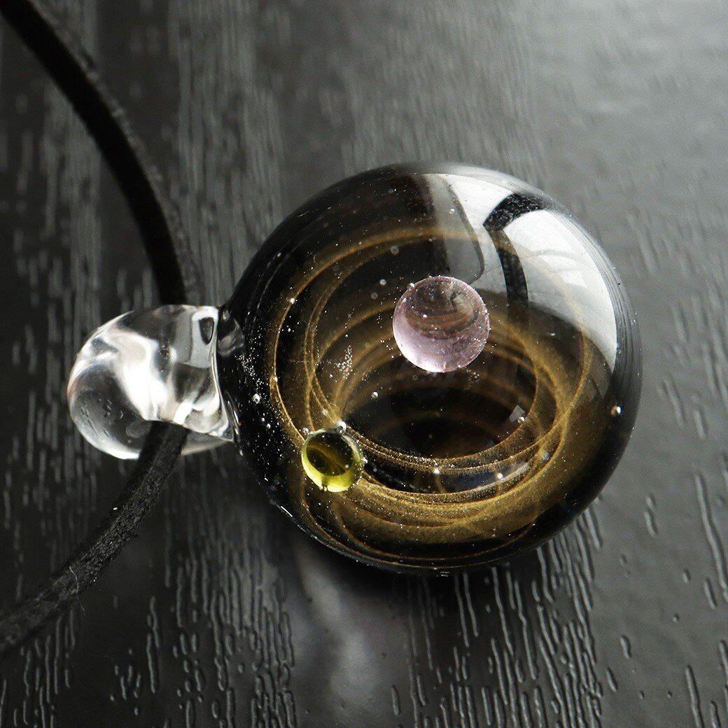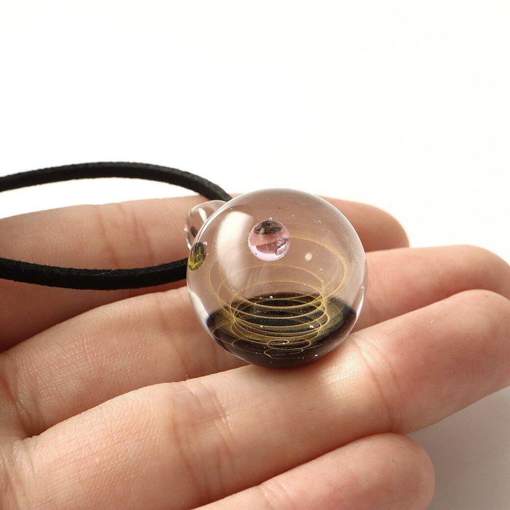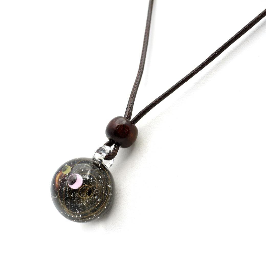 [GOLD STONE] ガラスの中に宇宙を閉じ込めた 耐熱ガラス アート ペンダント 惑星 銀河 幻想的 革紐 ネックレス