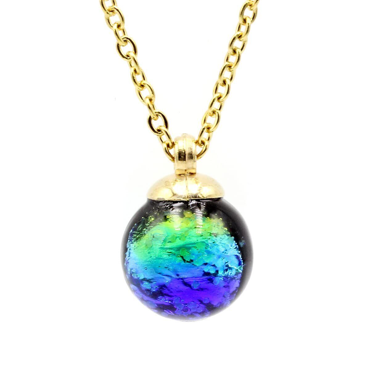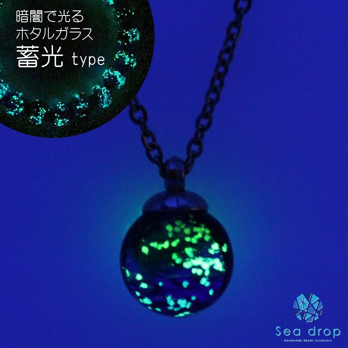 【商品仕様】 ホタルガラス:約12mm 蓄光タイプ (ケラママリン) チェーン:アズキチェーン 45cm
