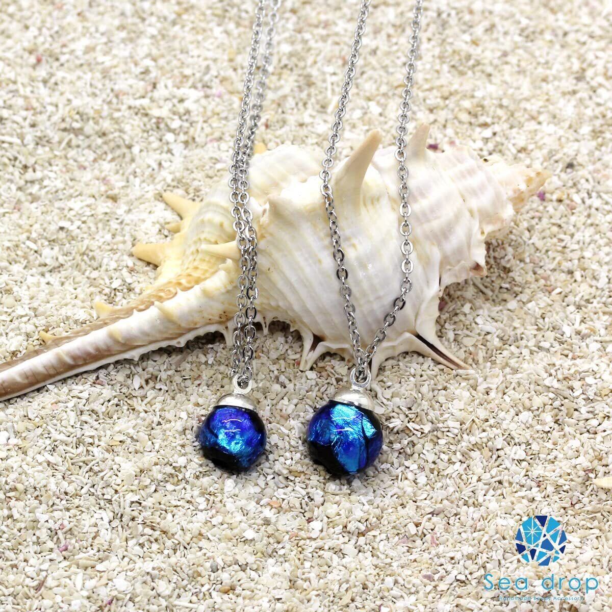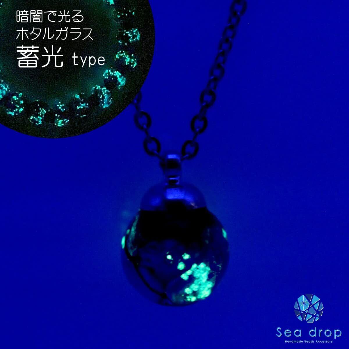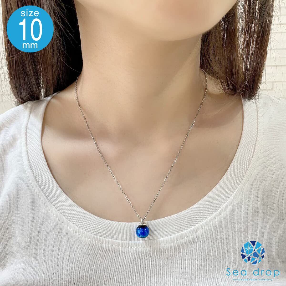 [Sea drop] 光る ホタルガラス ブルー 8mm ネックレス 蓄光 ステンレススチール抗アレルギー チェーン とんぼ玉 [143nt-s]