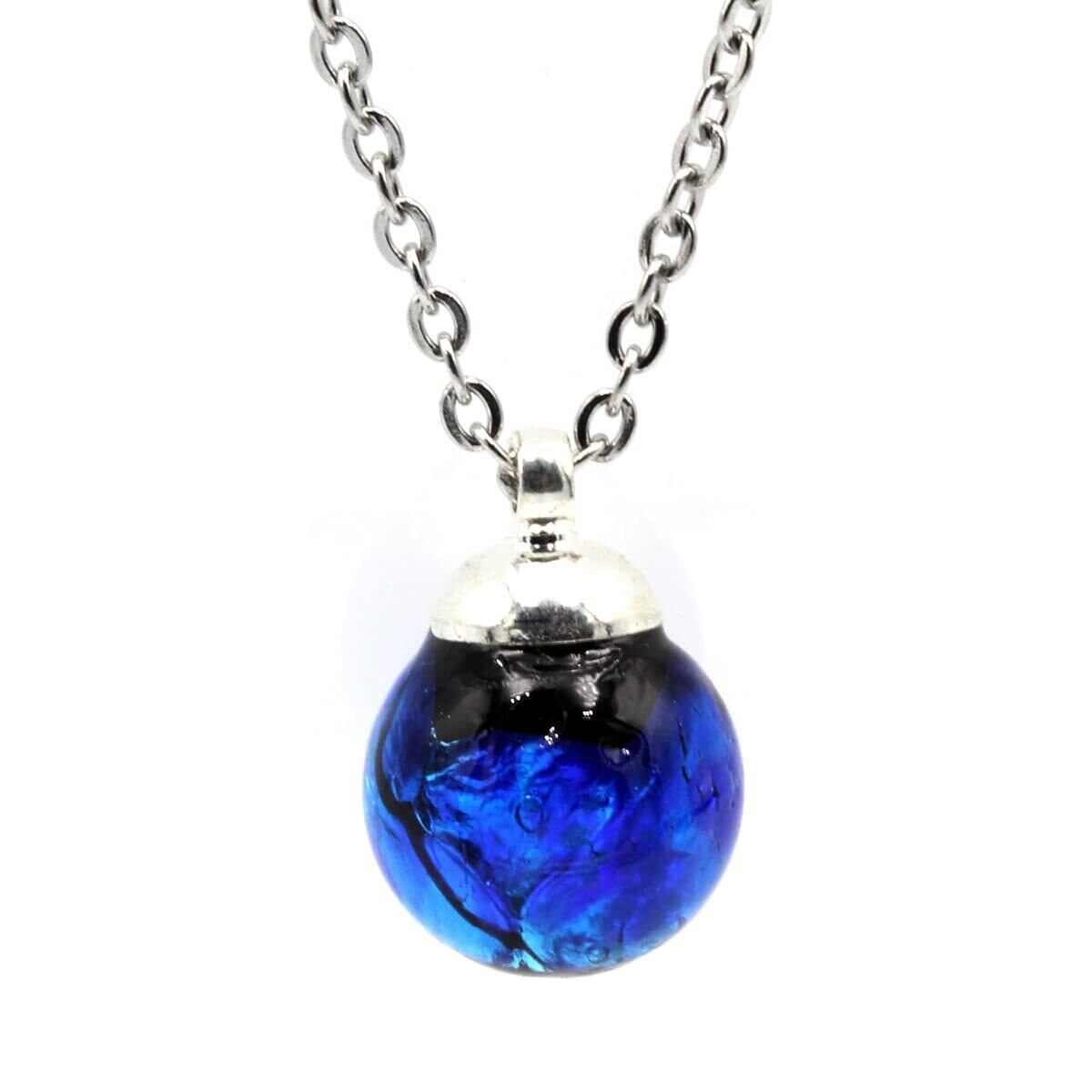 【商品仕様】 ホタルガラス:約14mm 蓄光タイプ (ブルー) チェーン:アズキチェーン 45cm