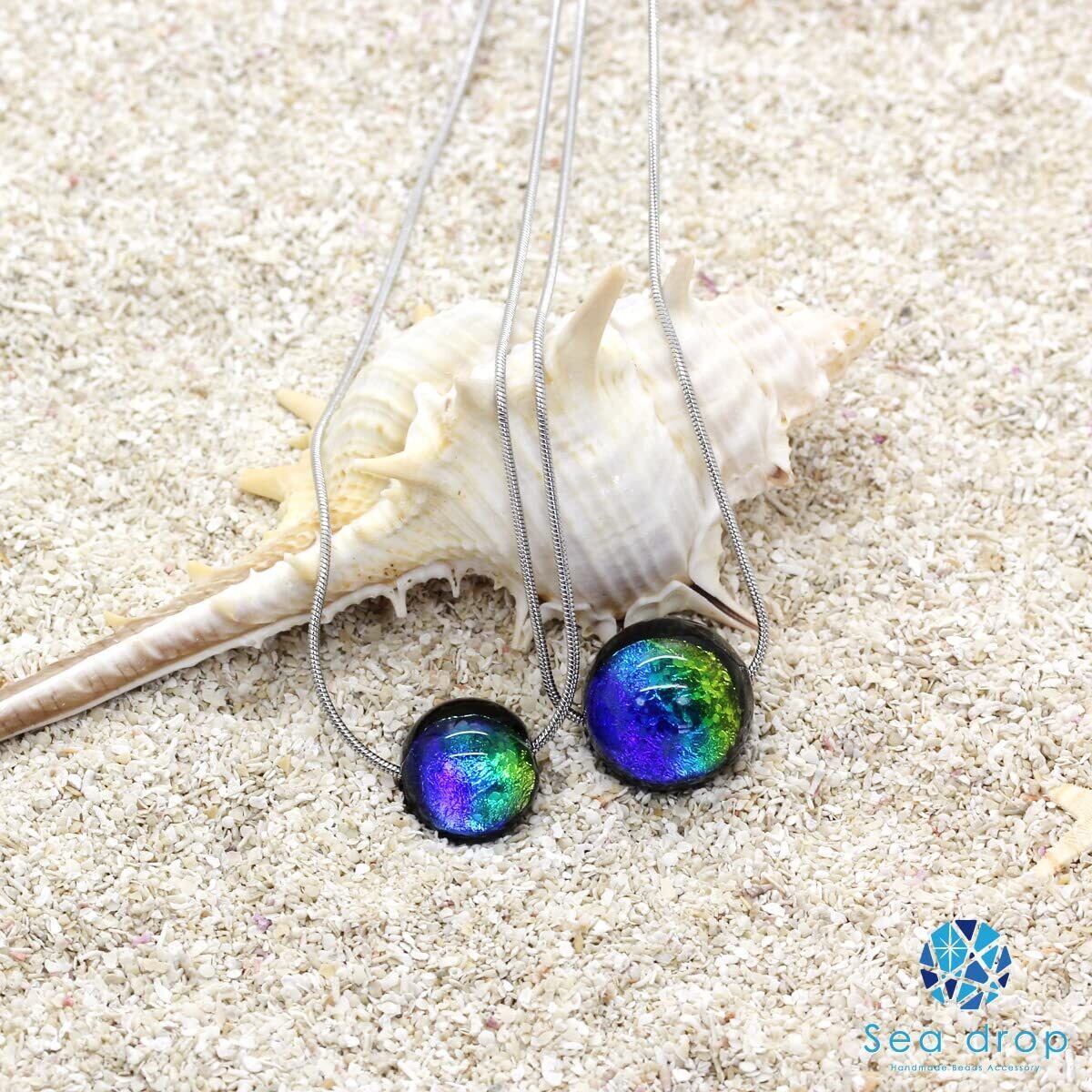 [Sea drop] 光る ホタルガラス ケラママリン 12mm ネックレス 蓄光 スネークチェーン レディースとんぼ玉 [138nt-2]
