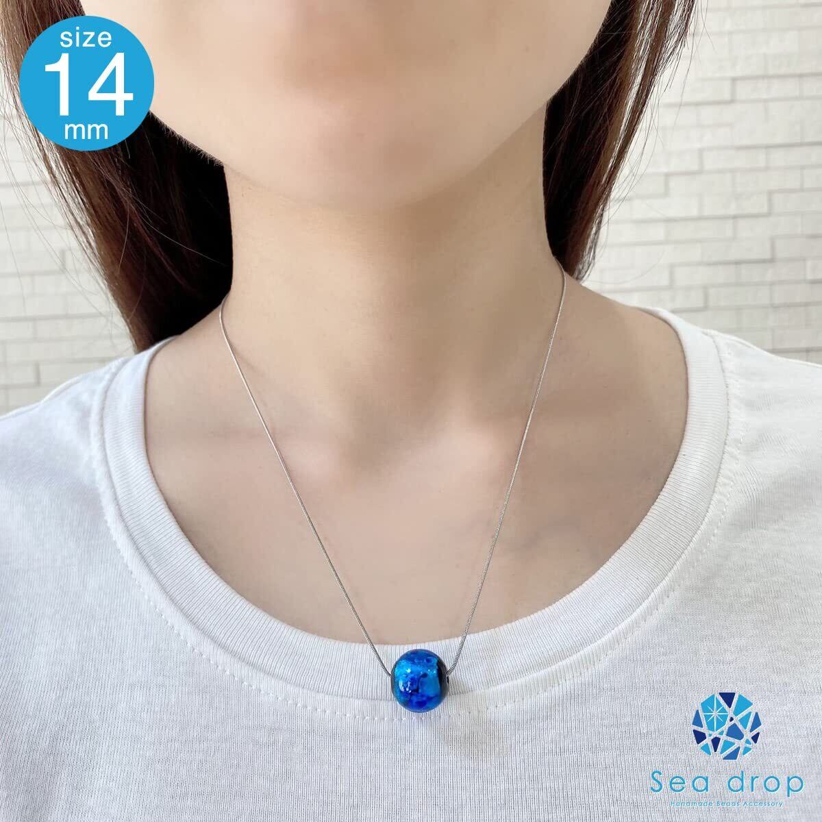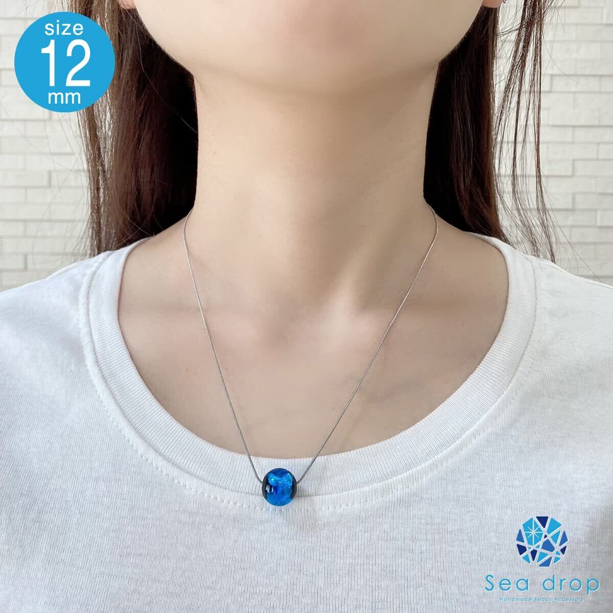 [Sea drop] 光る ホタルガラス ブルー 12mm ネックレス 蓄光 レディース スネークチェーン アクセサリー とんぼ玉 [139nt-2]