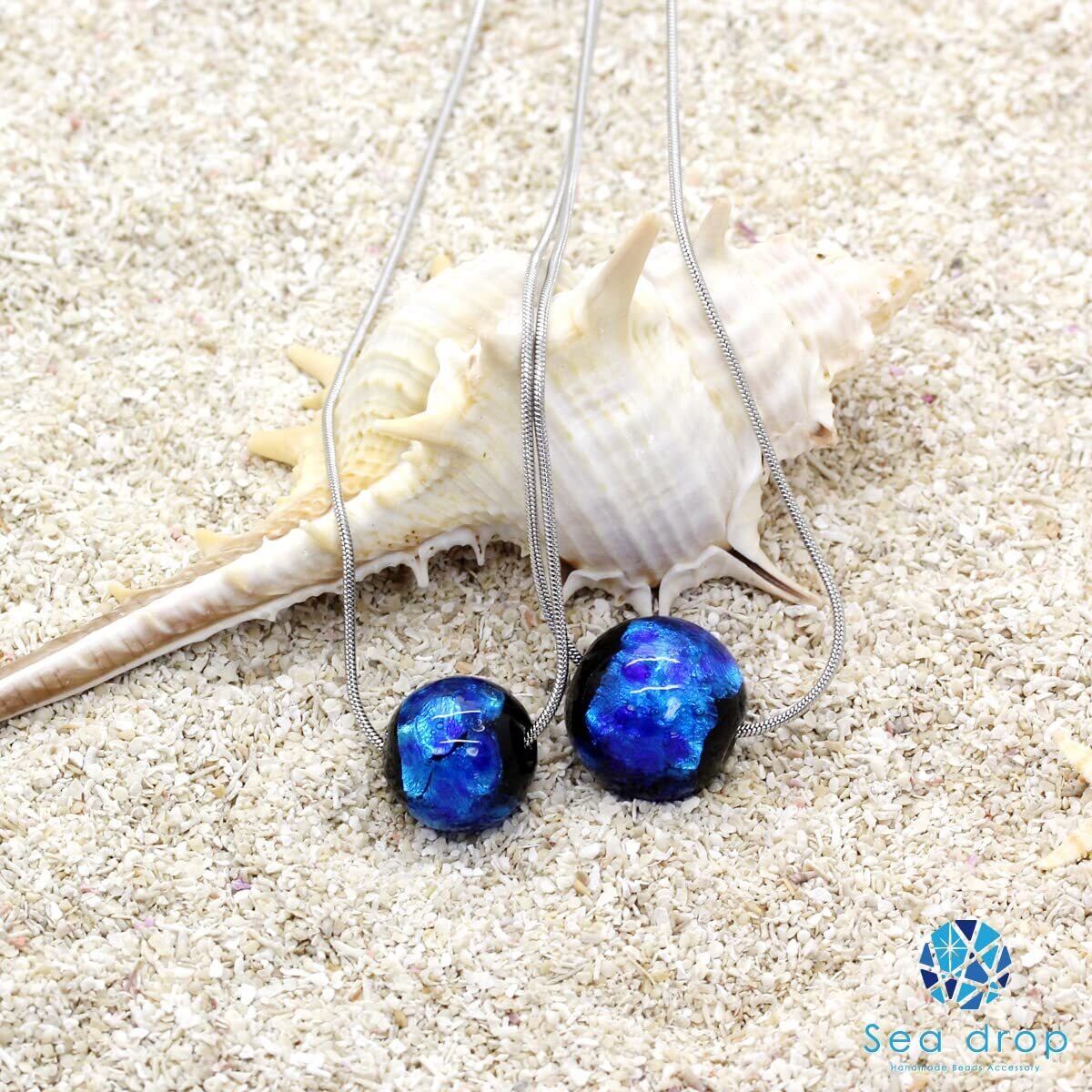 【上品なブルー】 海のパワーが詰まった深い青色が沖縄の海を感じさせてくれます。ガラス玉はカジュアルな装いはもちろん、エレガントなお洋服にも気軽に合わせることが可能です。品のある輝きが日々の疲れから心を解き放ちます。