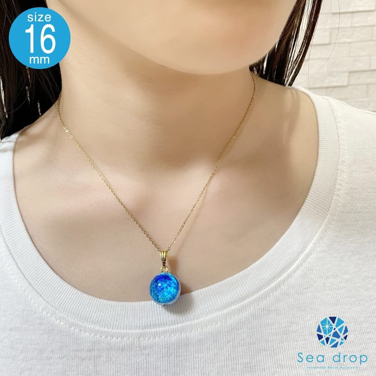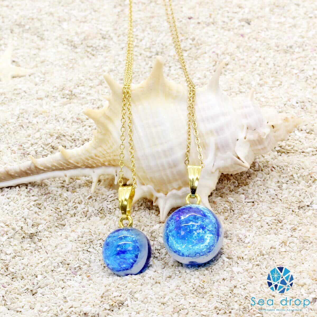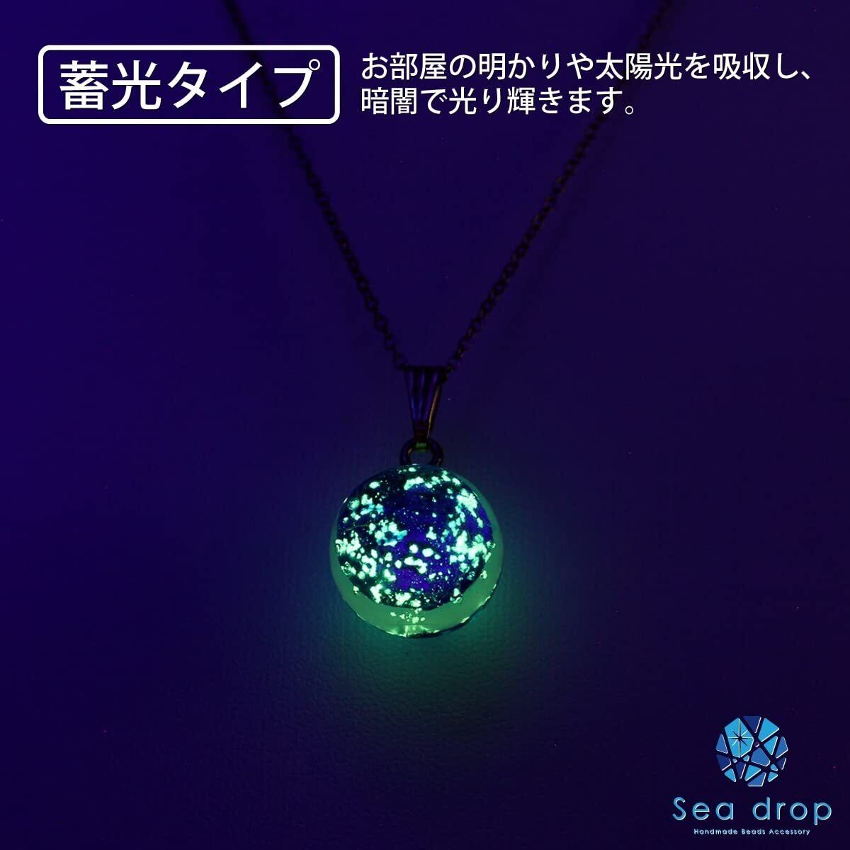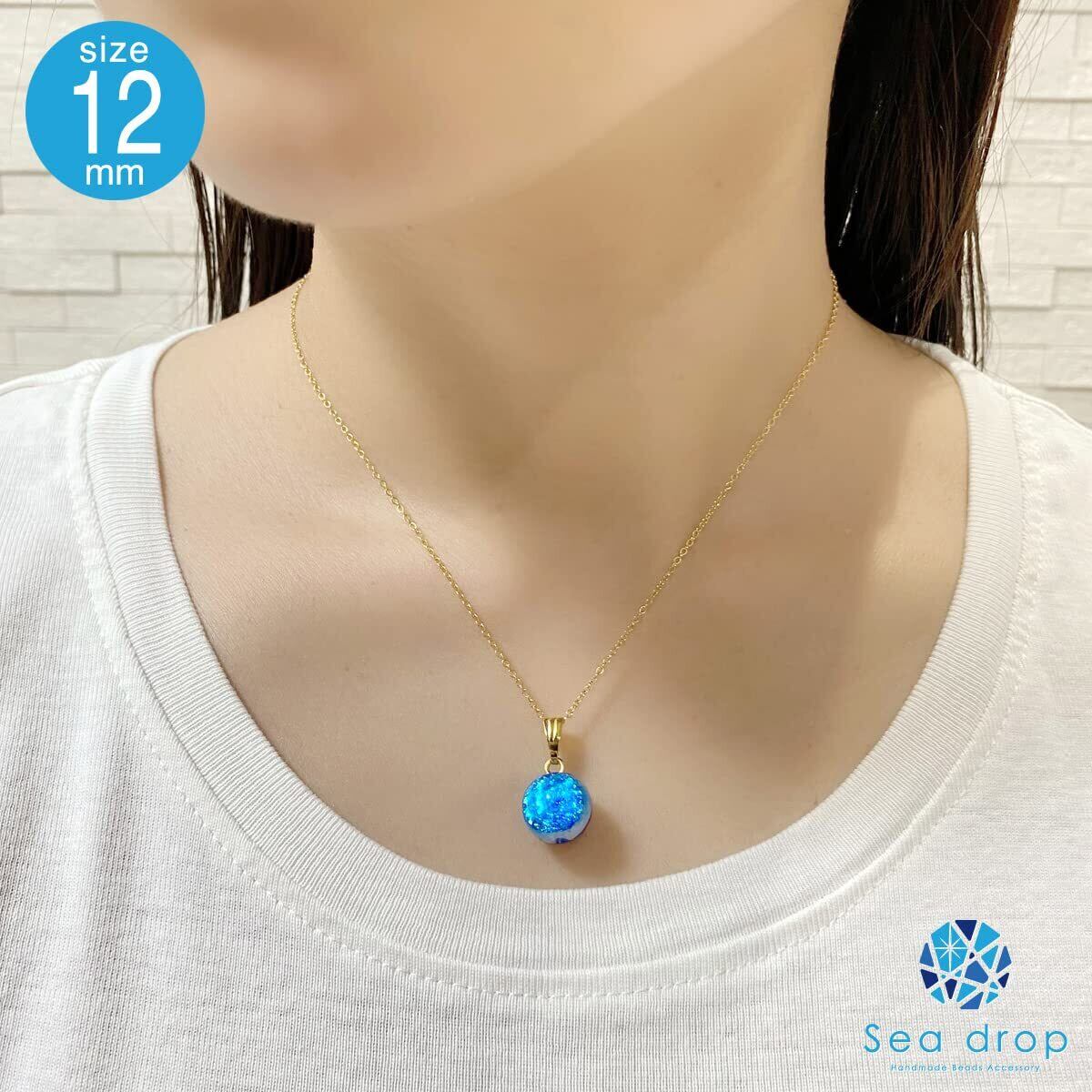 [Sea drop] 光る ホタルガラス ミヤコマリン ネックレス 蓄光 とんぼ玉 ステンレススチール抗アレルギーチェーン レディース ゴールド [166nt-g]