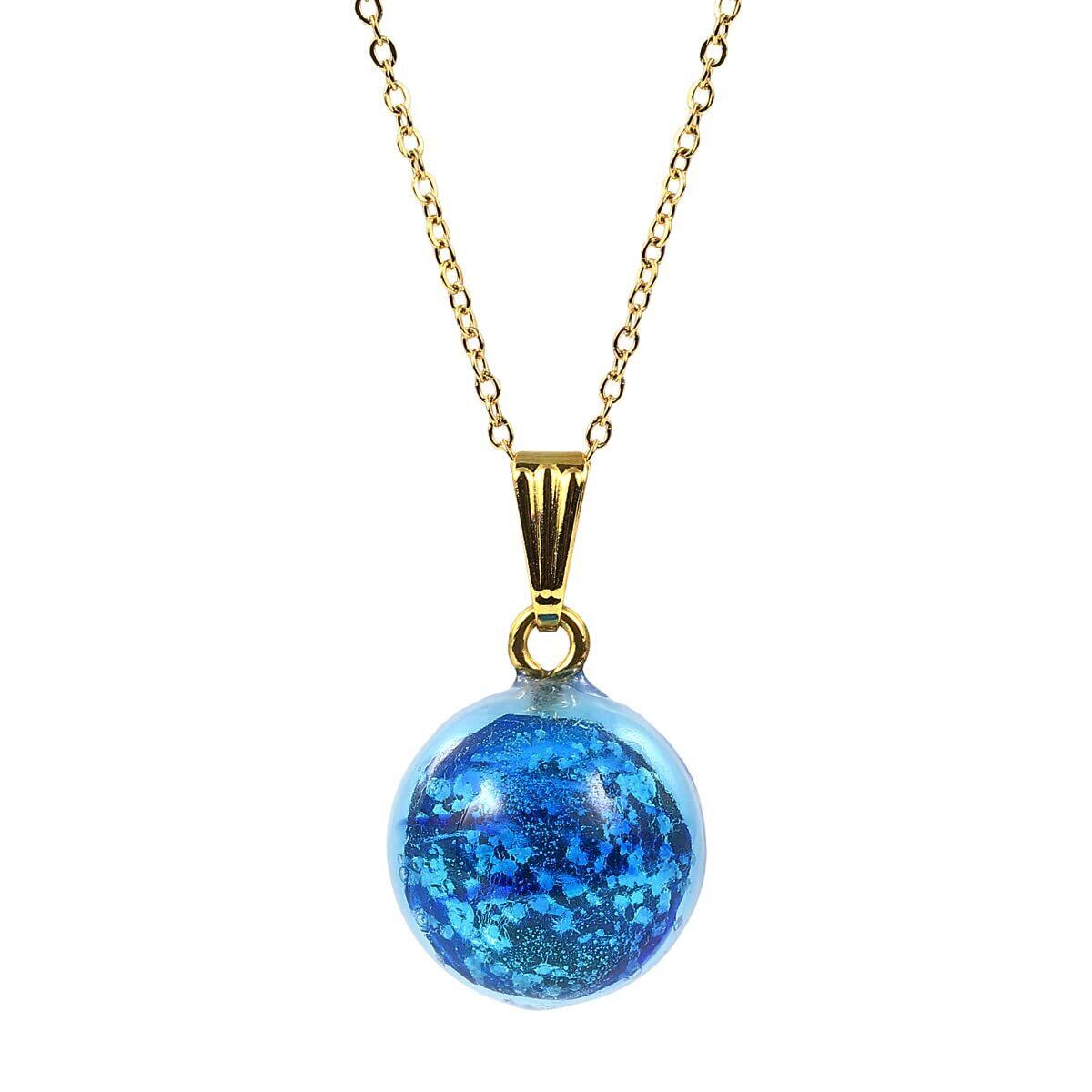 【商品仕様】 チェーン:ステンレススチール抗アレルギーチェーン ゴールドカラー 40cm+5cm(アジャスター付) ホタルガラス:約16mm 蓄光タイプ (ミヤコマリン)