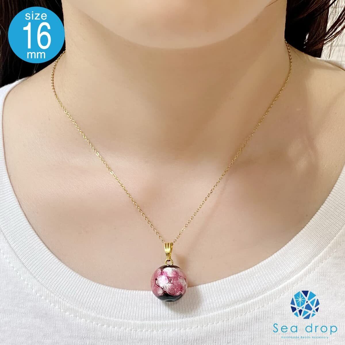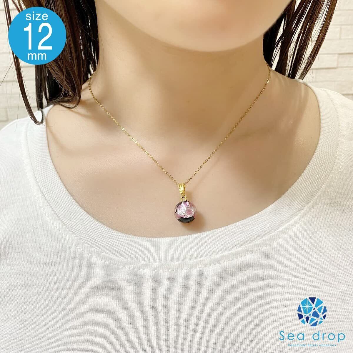 [Sea drop] 光る ホタルガラス ピンク ネックレス 蓄光 とんぼ玉 ステンレススチール抗アレルギーチェーン レディース ゴールド [167nt-g]