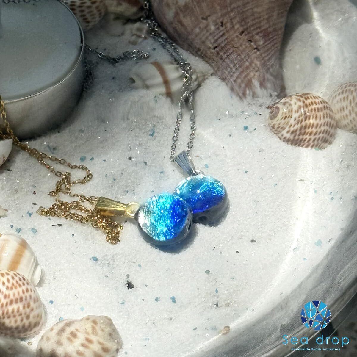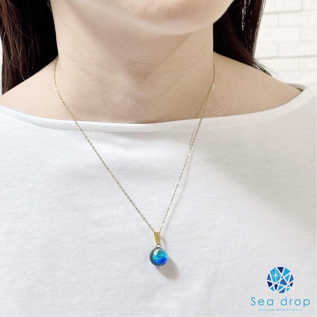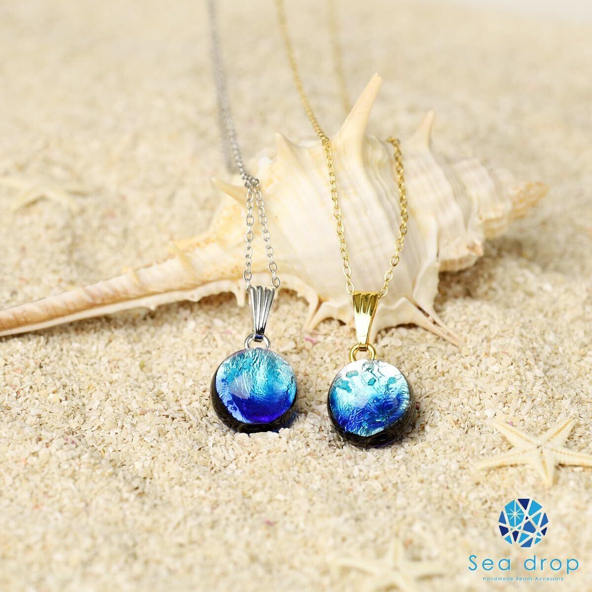 [Sea drop] 光る ホタルガラス ヨナグニブルー 12mm ネックレス 蓄光 とんぼ玉 ステンレススチールチェーン レディース ゴールド [278nt]