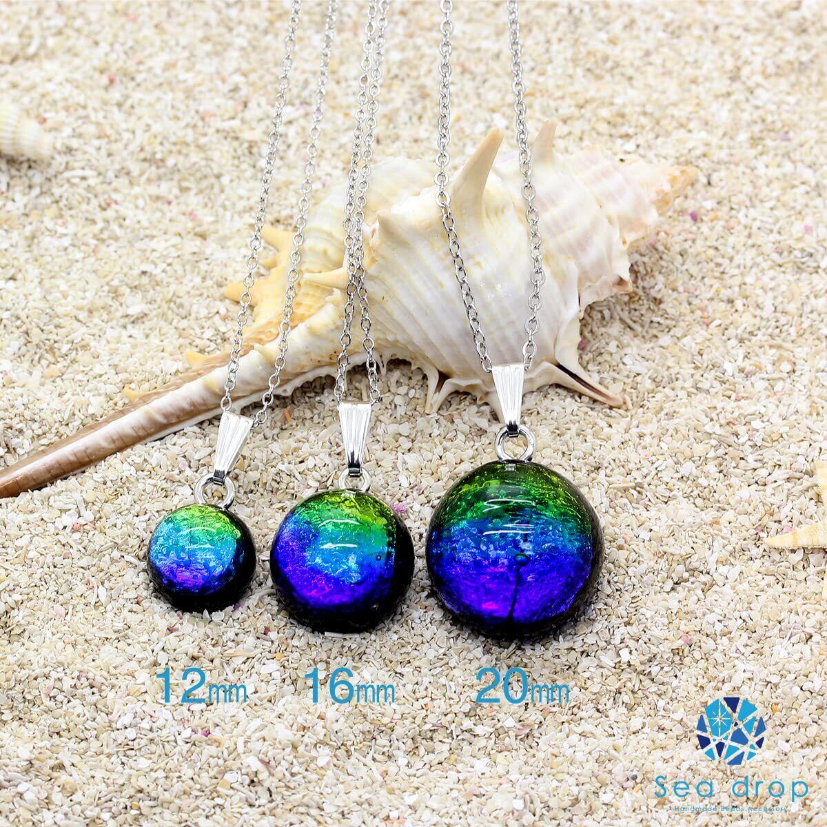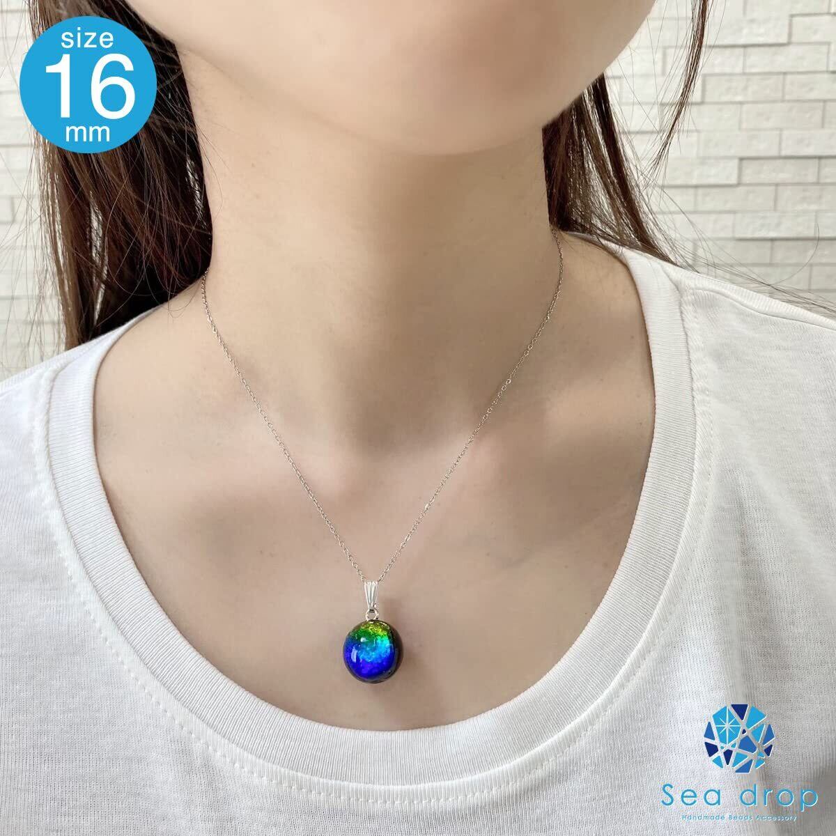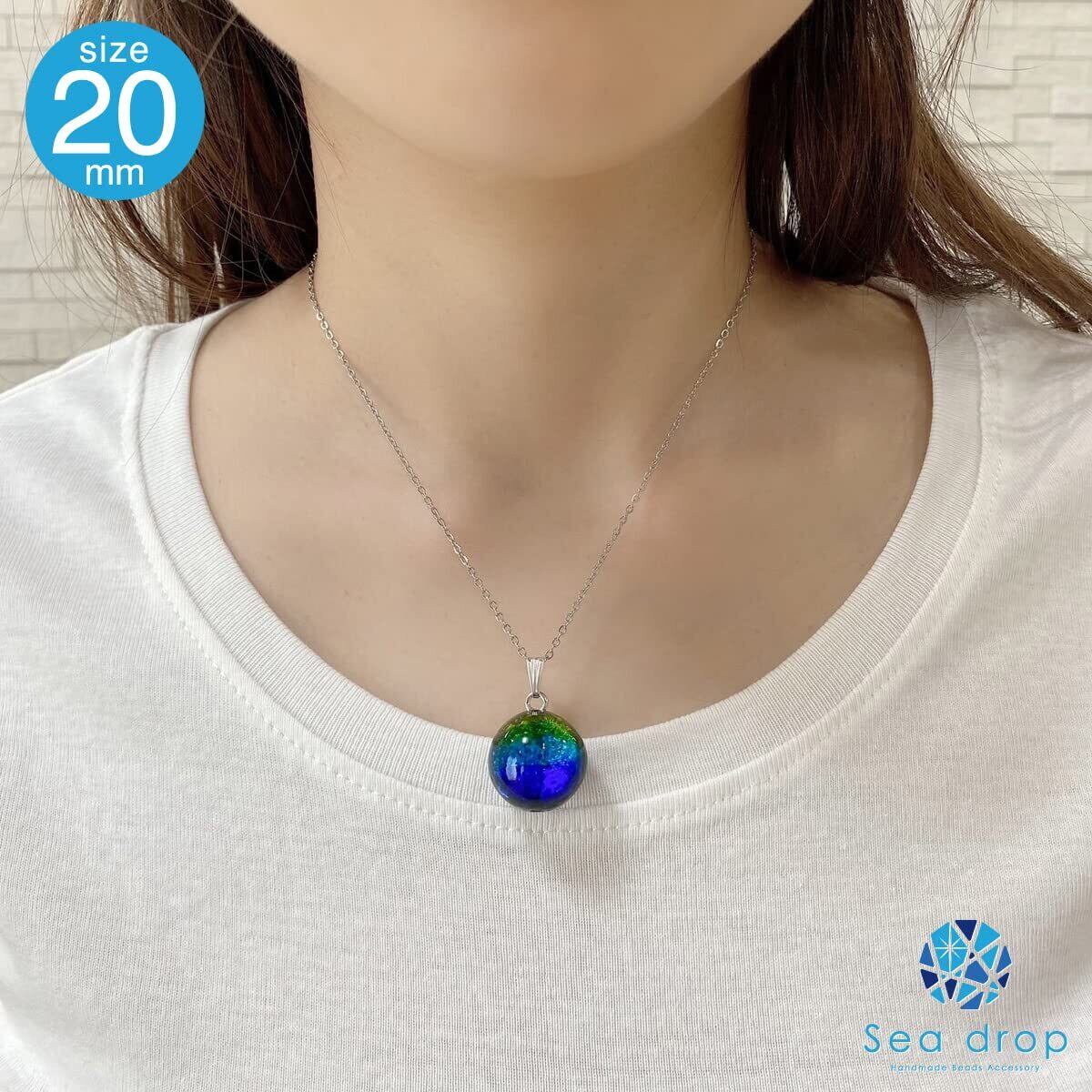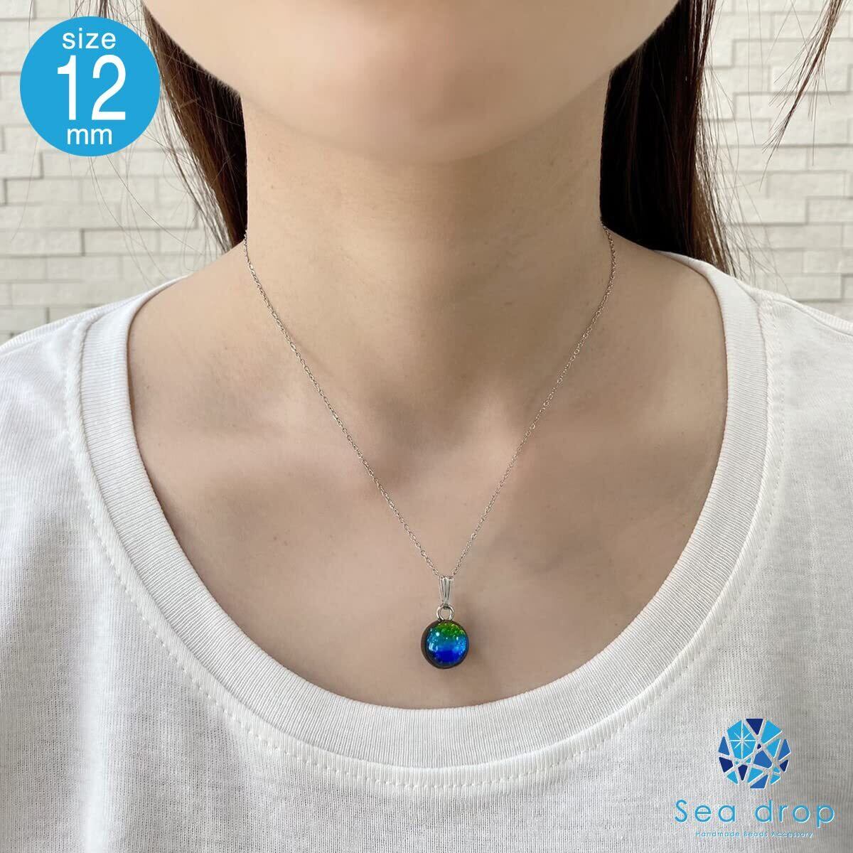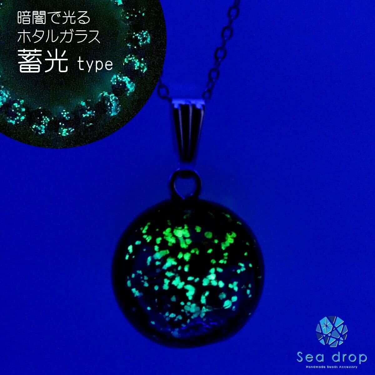 [Sea drop] 光る ホタルガラス ケラママリン 12mm ネックレス 蓄光 とんぼ玉 ステンレススチール抗アレルギーチェーン レディース シルバー [153nt-s]