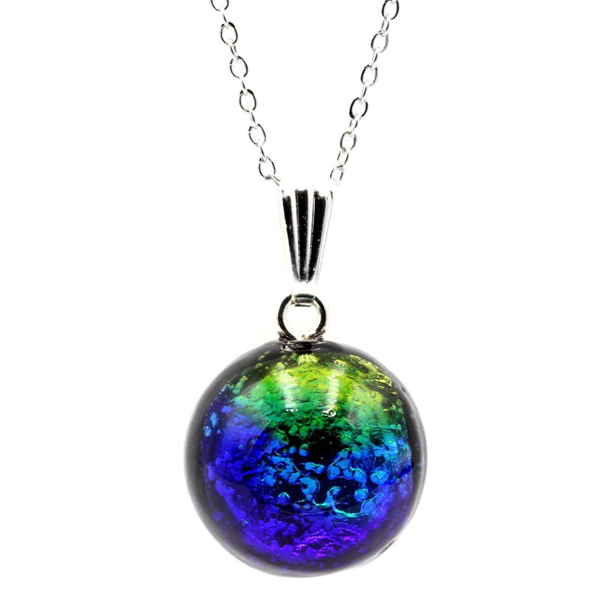 【商品仕様】 チェーン:ステンレススチール抗アレルギーチェーン シルバーカラー 40cm+5cm(アジャスター付) ホタルガラス:約12mm 蓄光タイプ (ケラママリン)
