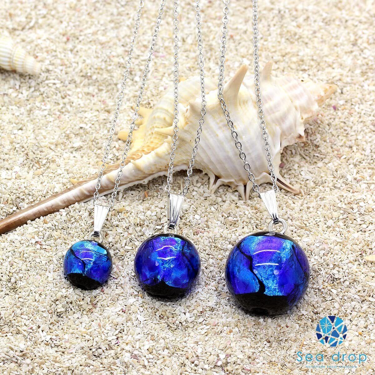 【ホタルガラス「ネックレス」】 熟練した職人しか製作できない貴重なガラス玉を使用。胸元に美しく神秘的な輝きを放つホタルガラス。高級感と可愛らしさを兼ね備えた品のあるアクセサリーです。