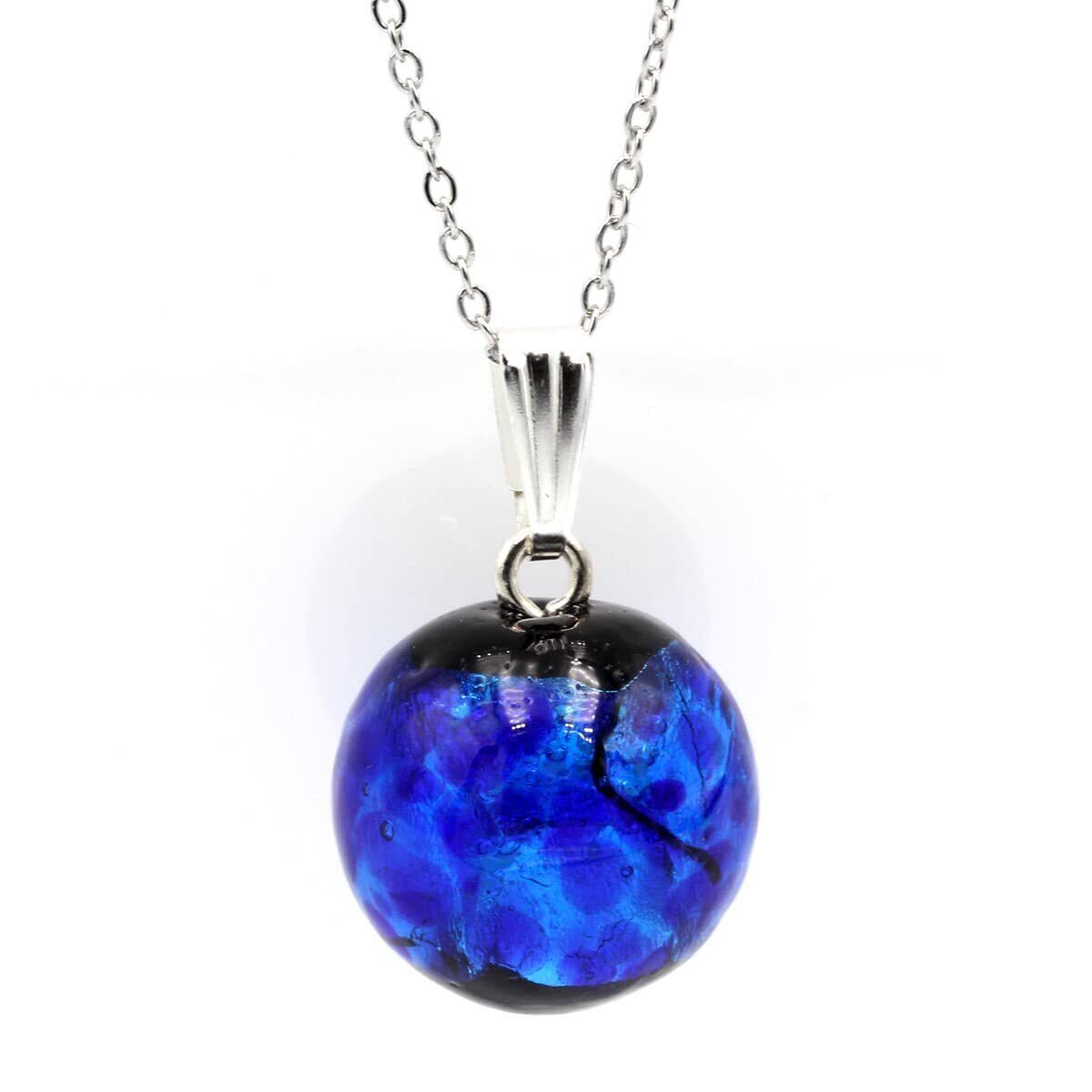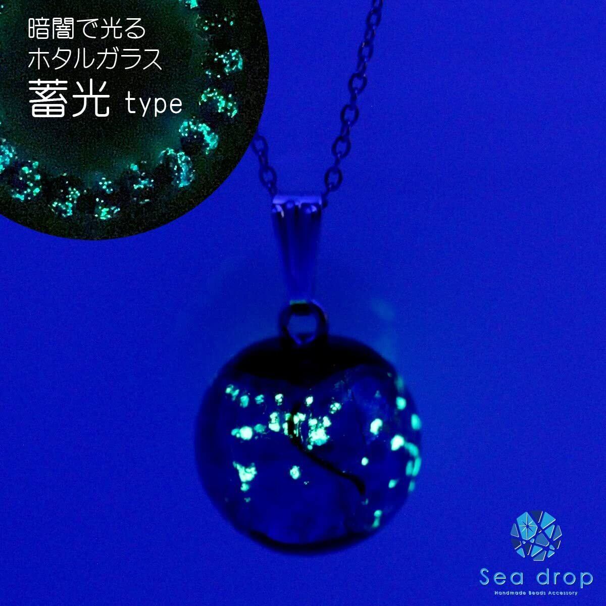 【商品仕様】 チェーン:ステンレススチール抗アレルギーチェーン シルバーカラー 40cm+5cm(アジャスター付) ホタルガラス:約12mm 蓄光タイプ (ブルー)