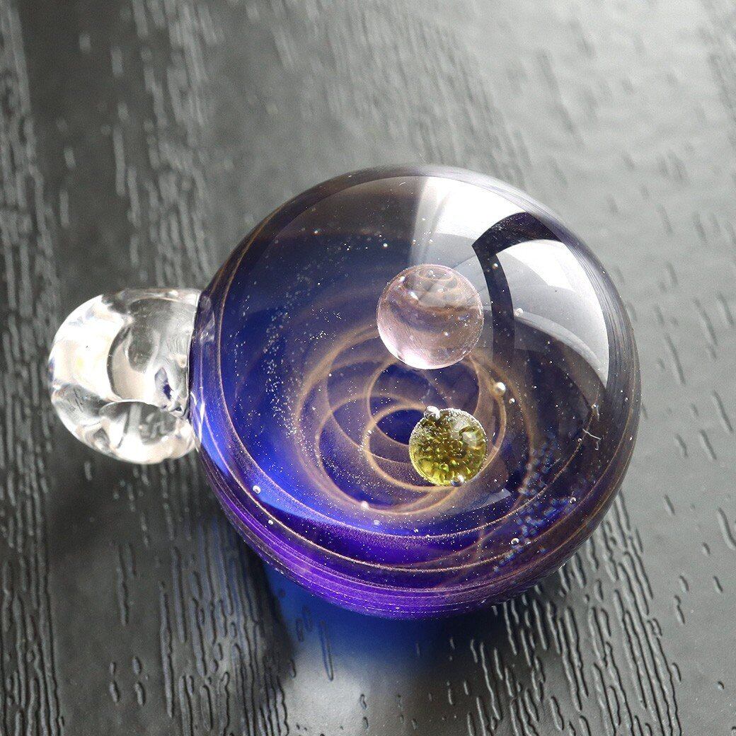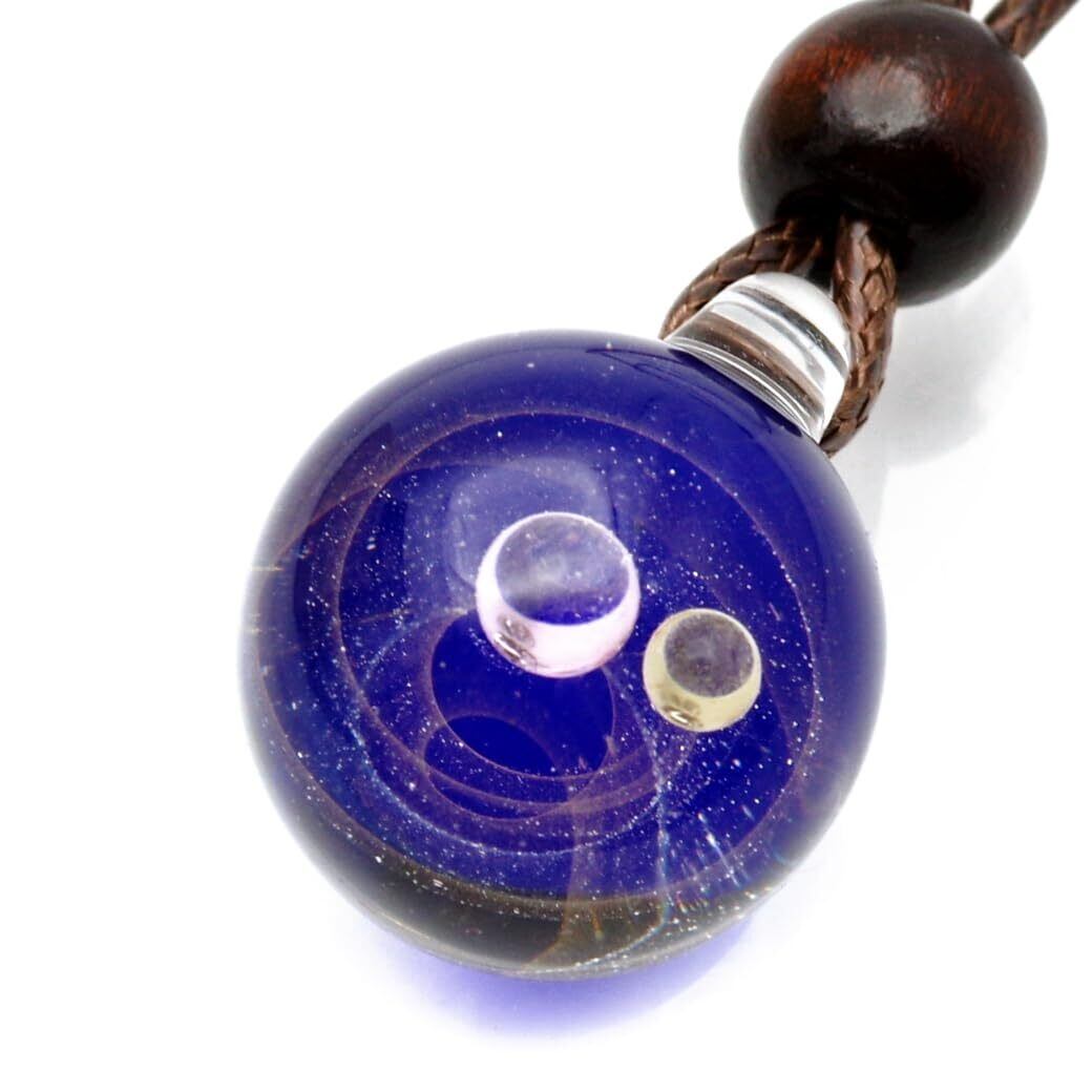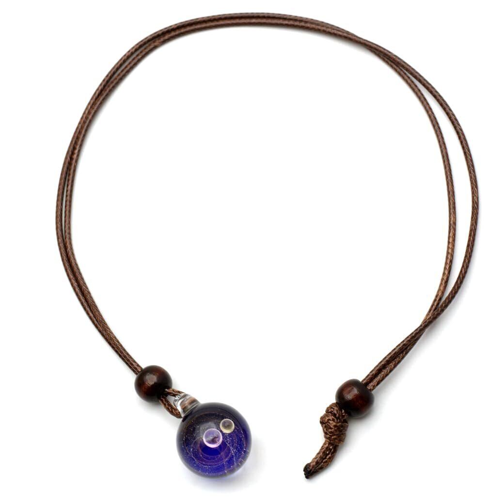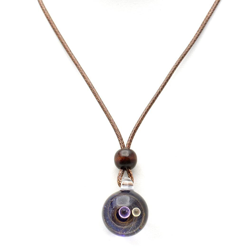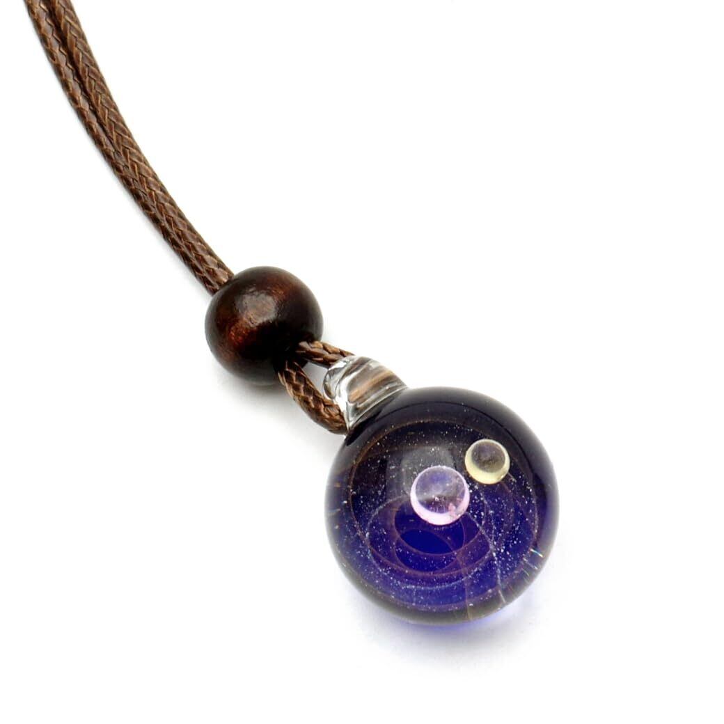 [GOLD STONE] ガラスの中に宇宙を閉じ込めた 耐熱ガラス アート ペンダント 惑星 銀河 幻想的 革紐 ネックレス