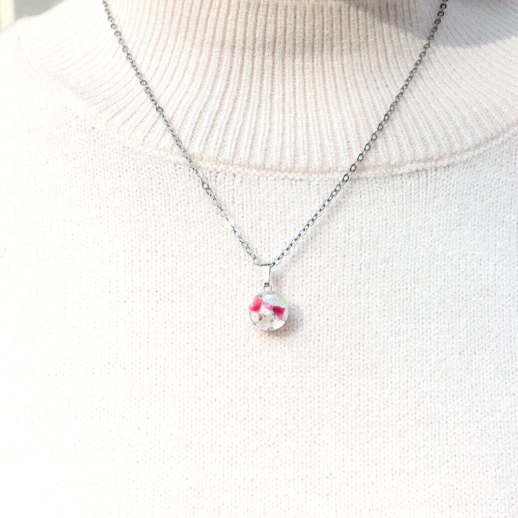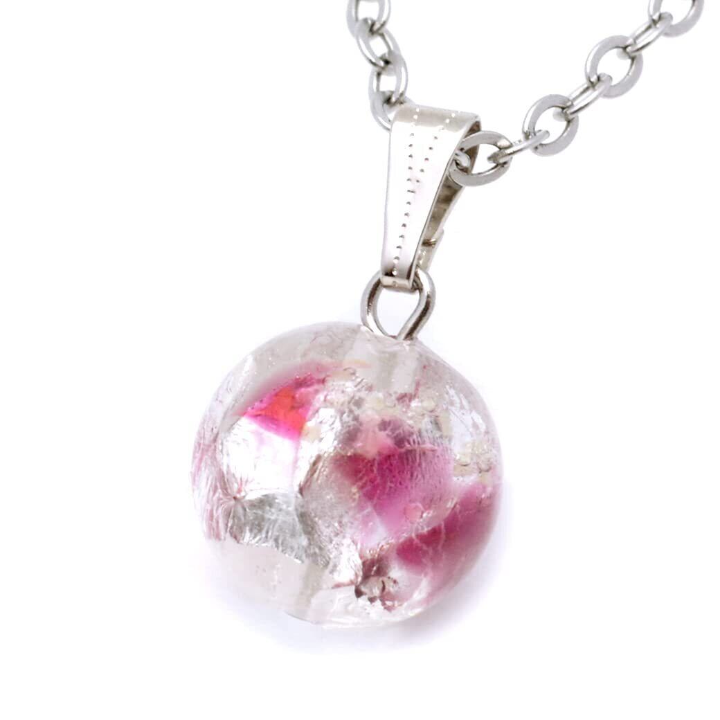 [GOLD STONE] ホタルガラス ネックレス クリア ピンク ペンダント 光る 蓄光 とんぼ玉 沖縄 お土産 レディース アクセサリー 爽やか