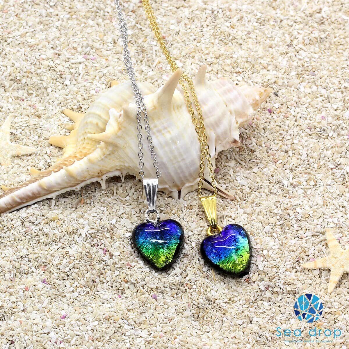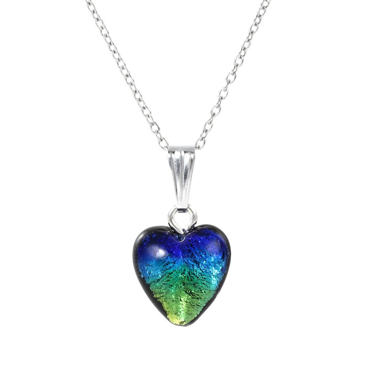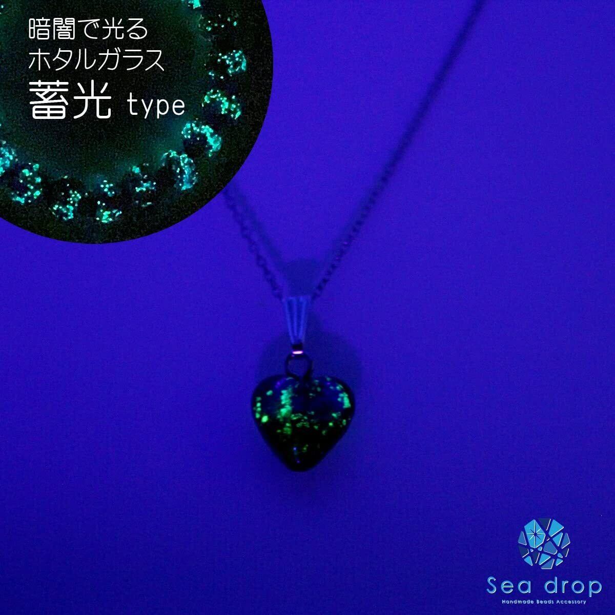 [Sea drop] 光る ホタルガラス ケラママリン ハート型 ネックレス 蓄光 とんぼ玉 ステンレススチール抗アレルギーチェーン レディース [158nt]