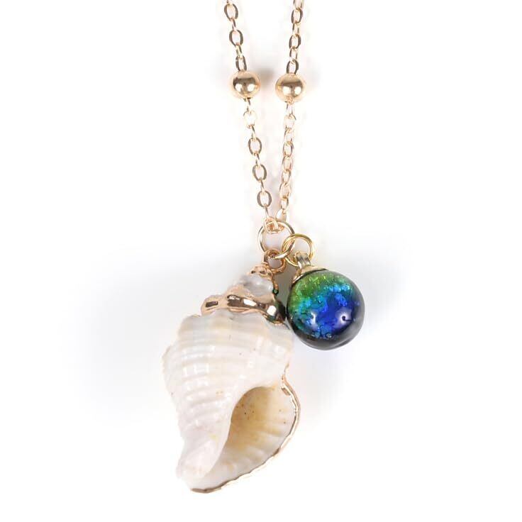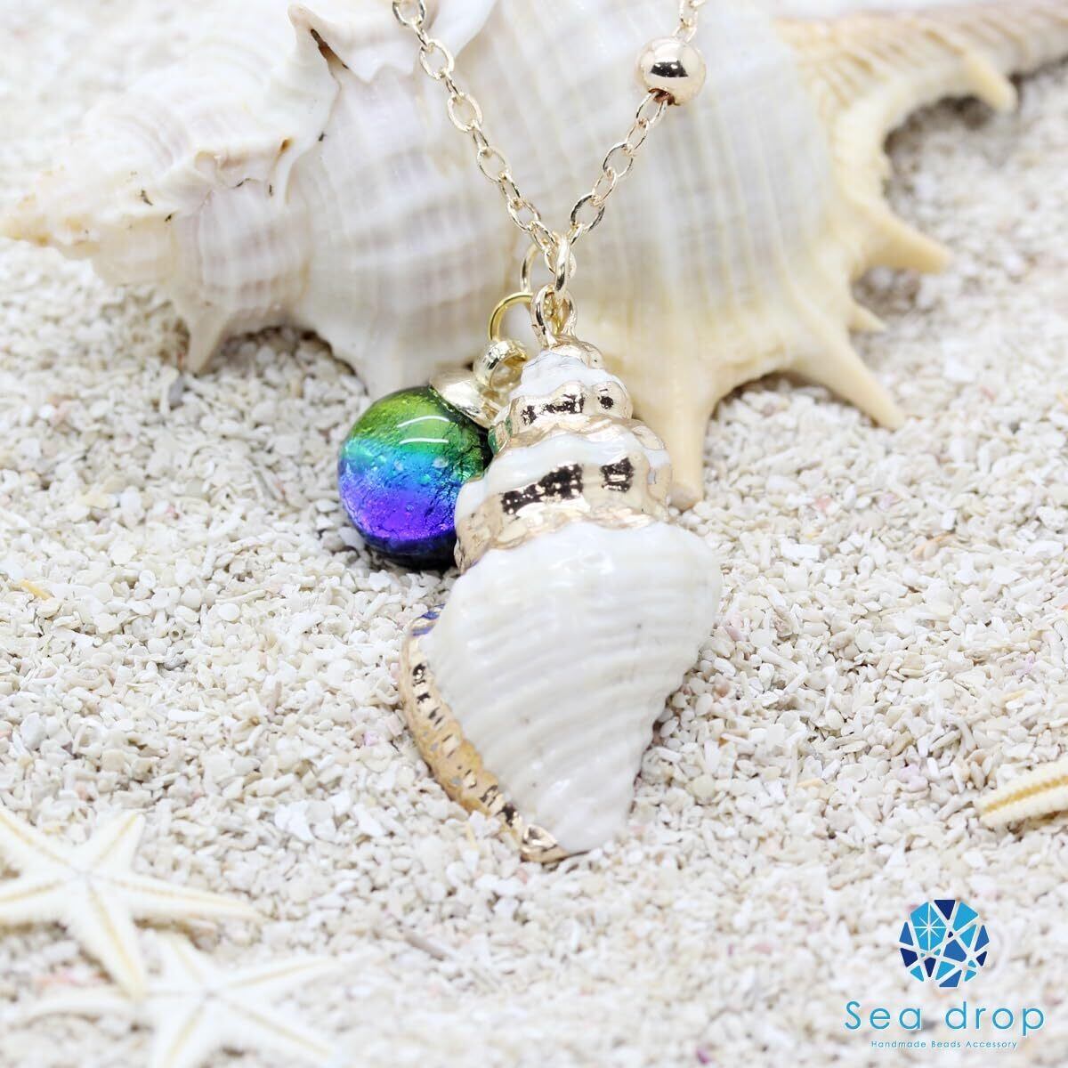 [Sea drop] 光る ホタルガラス ケラママリン 10mm 貝殻 ネックレス 蓄光 レディース 巻貝 とんぼ玉 [246nt]