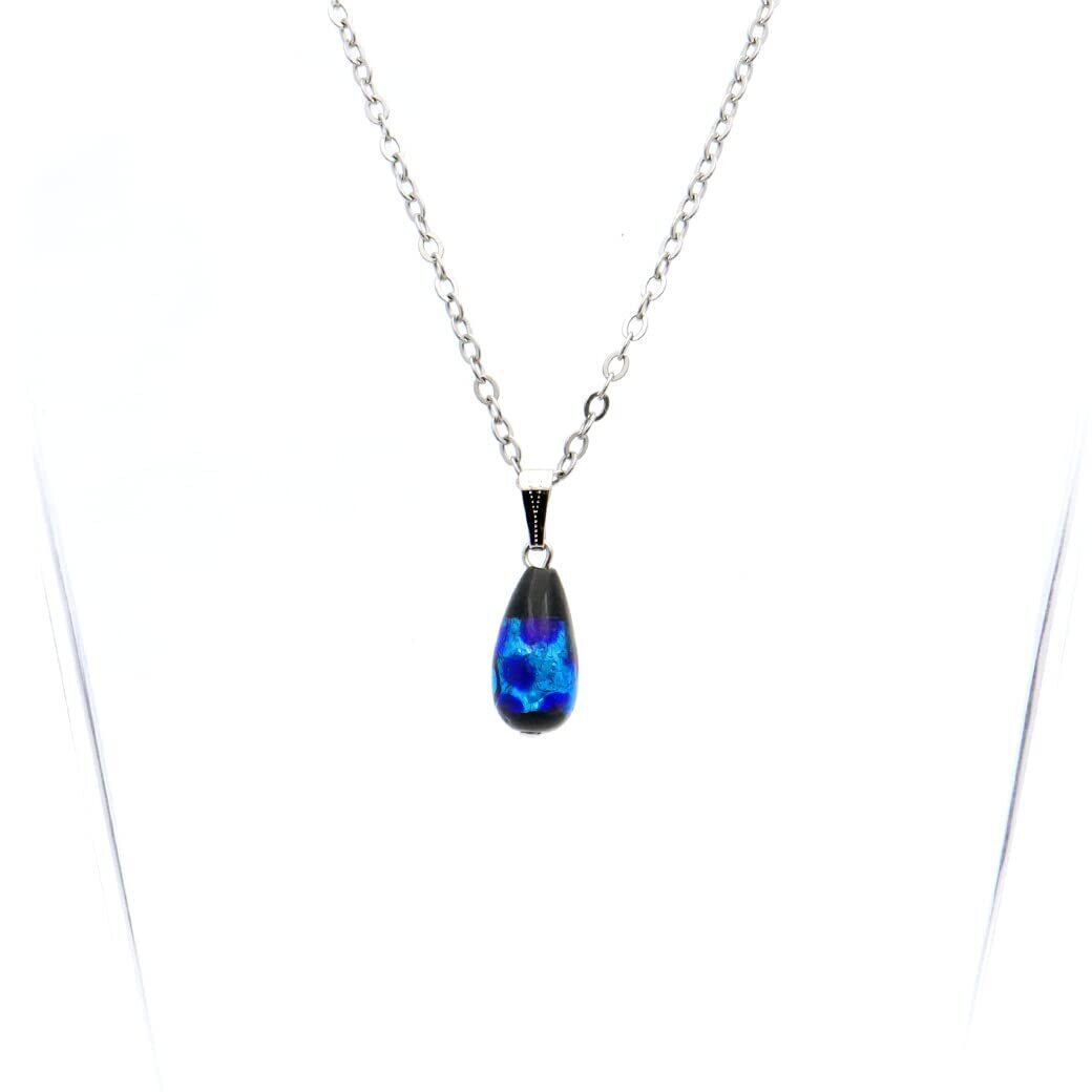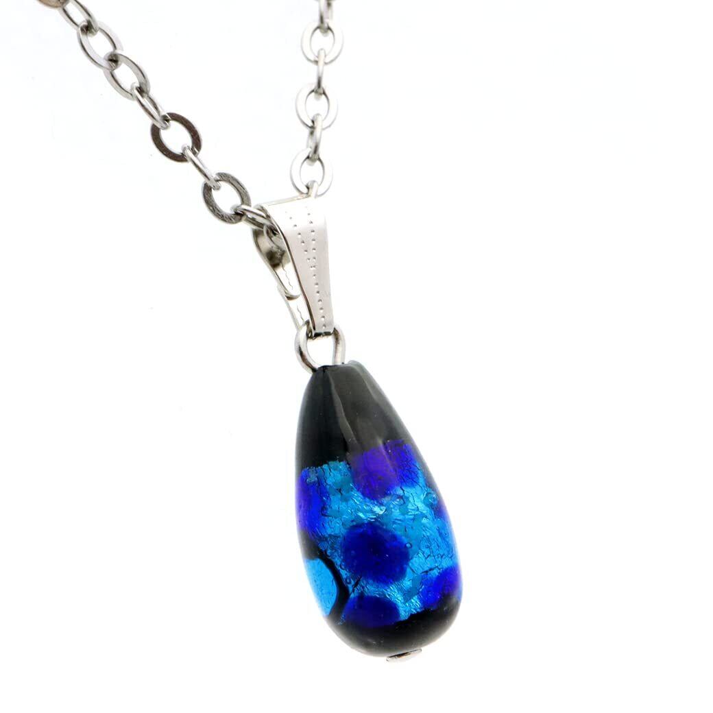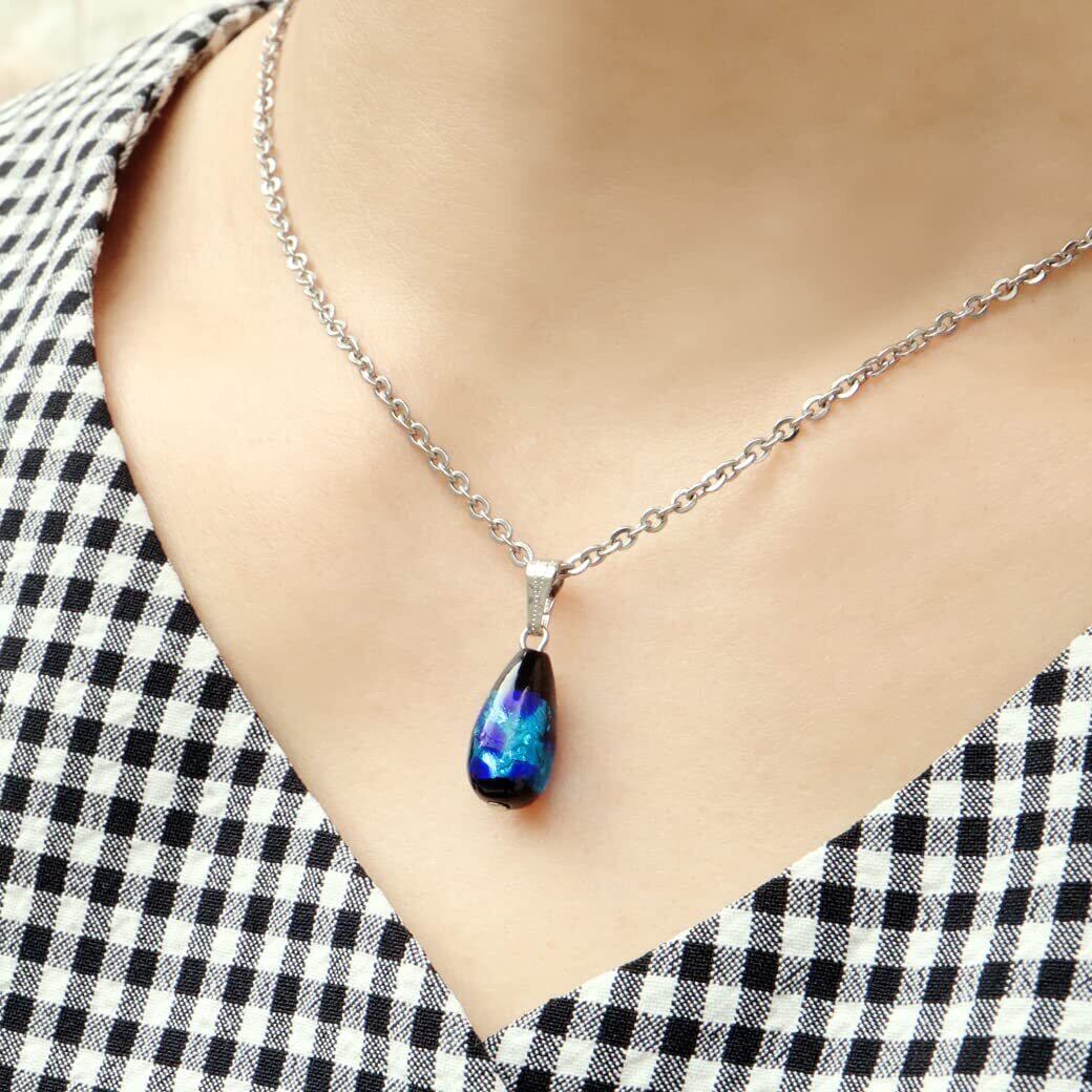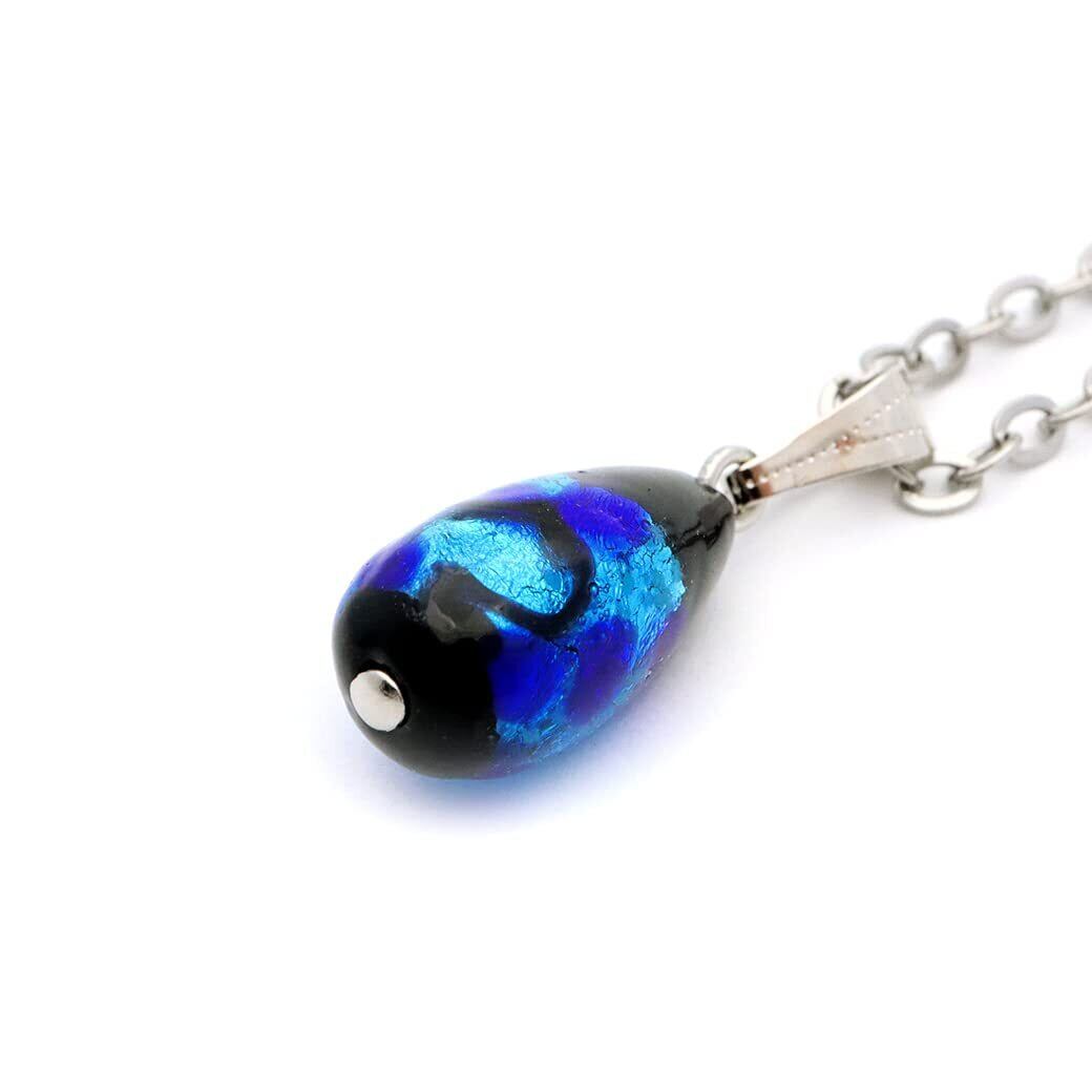 [GOLD STONE] 光る ホタルガラス ネックレス しずく ドロップとんぼ玉 ペンダント チェーン付き ブルー 沖縄 蓄光