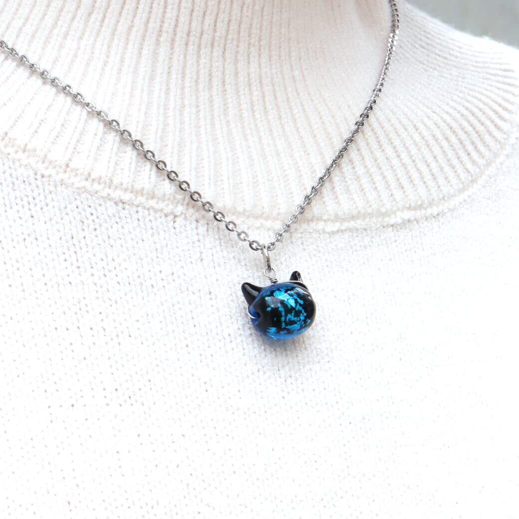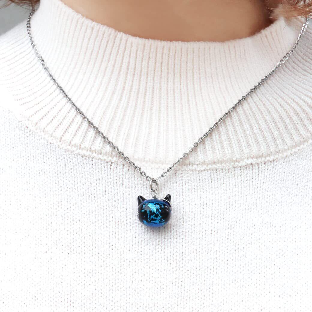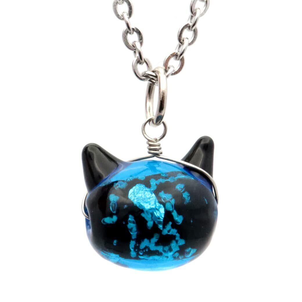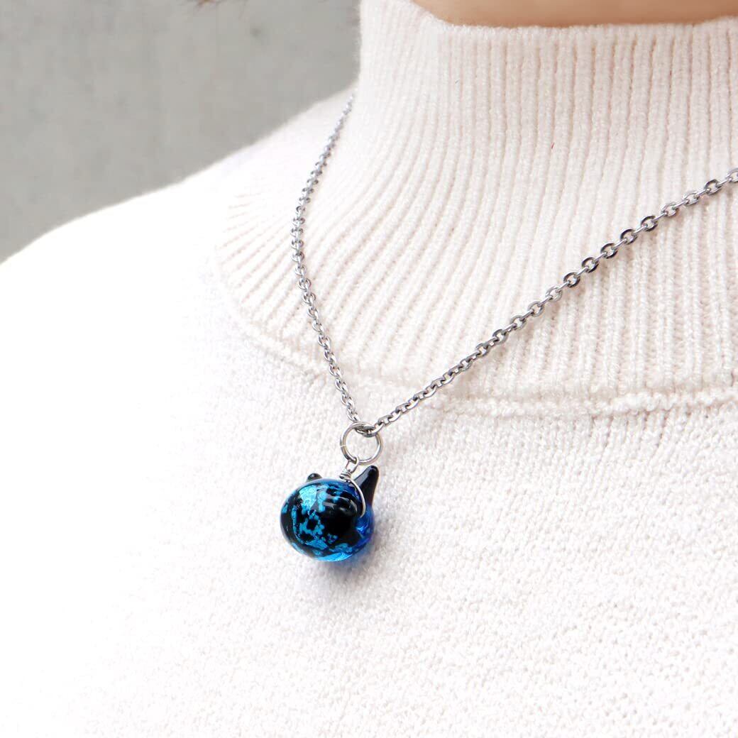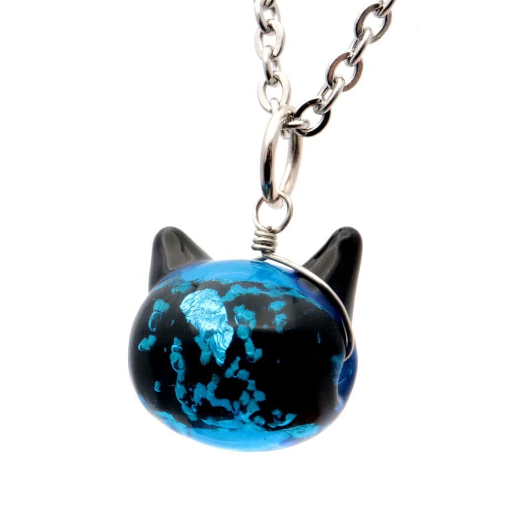 [GOLD STONE] ホタルガラス ネックレス 猫 かわいい ペンダント レディース 光る 蓄光 沖縄 お土産 おしゃれ とんぼ玉 ねこ ネコ にゃんこ プレゼント
