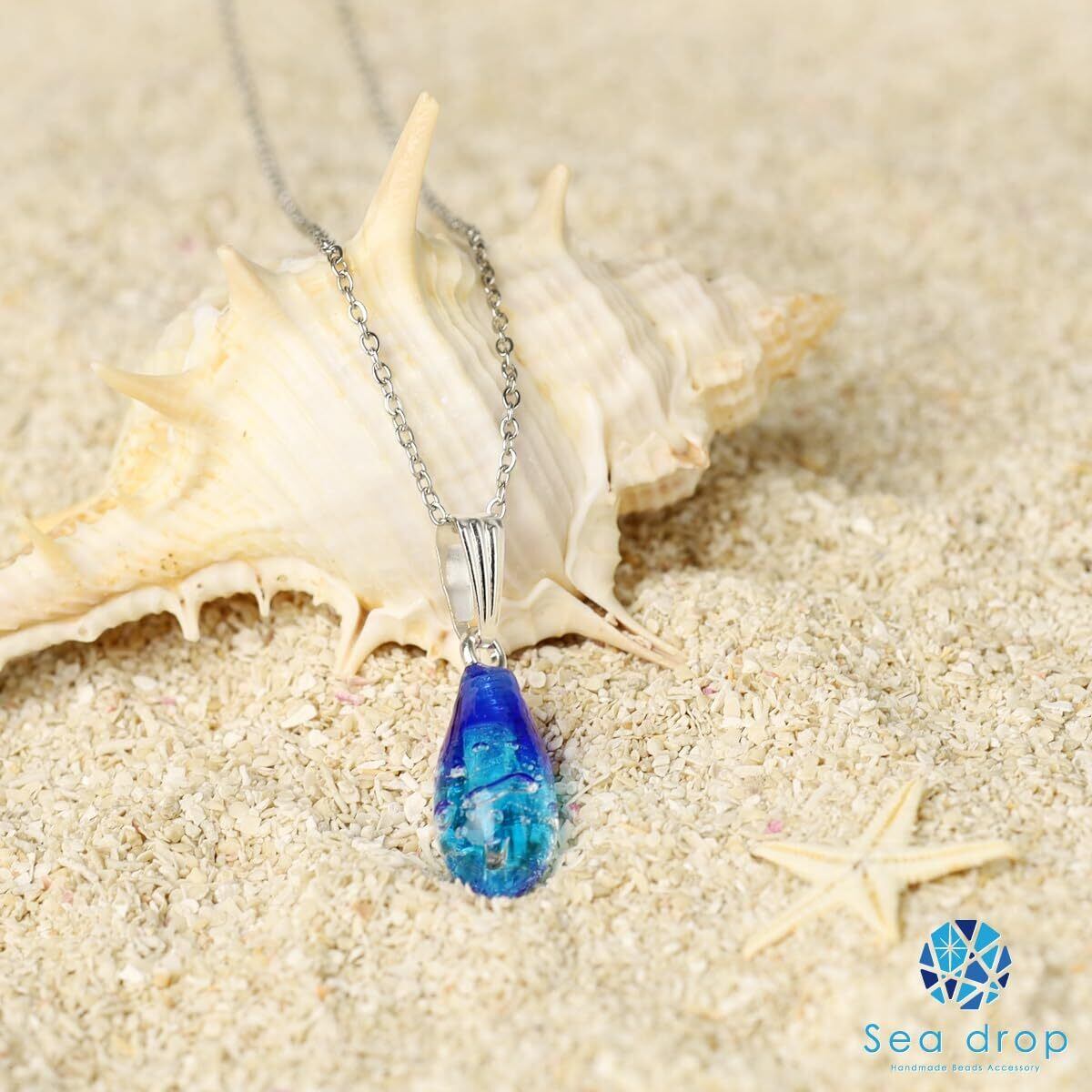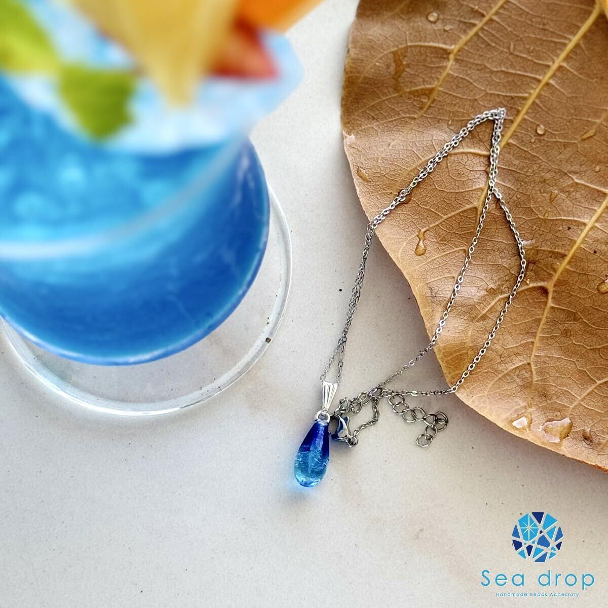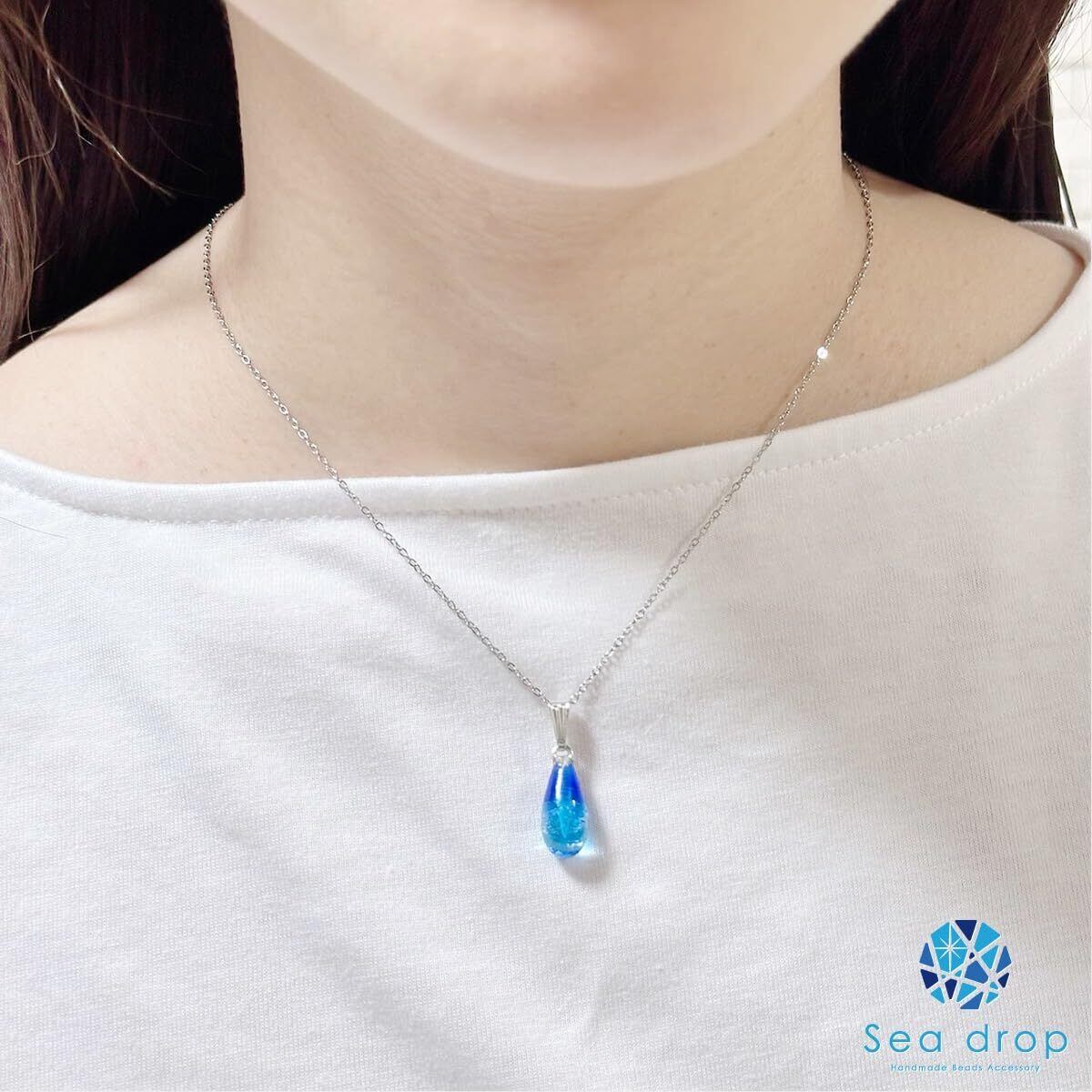 Sea drop とんぼ玉 クリアブルー しずく型 約15mm×8mm ネックレス レディース シルバー [290n]