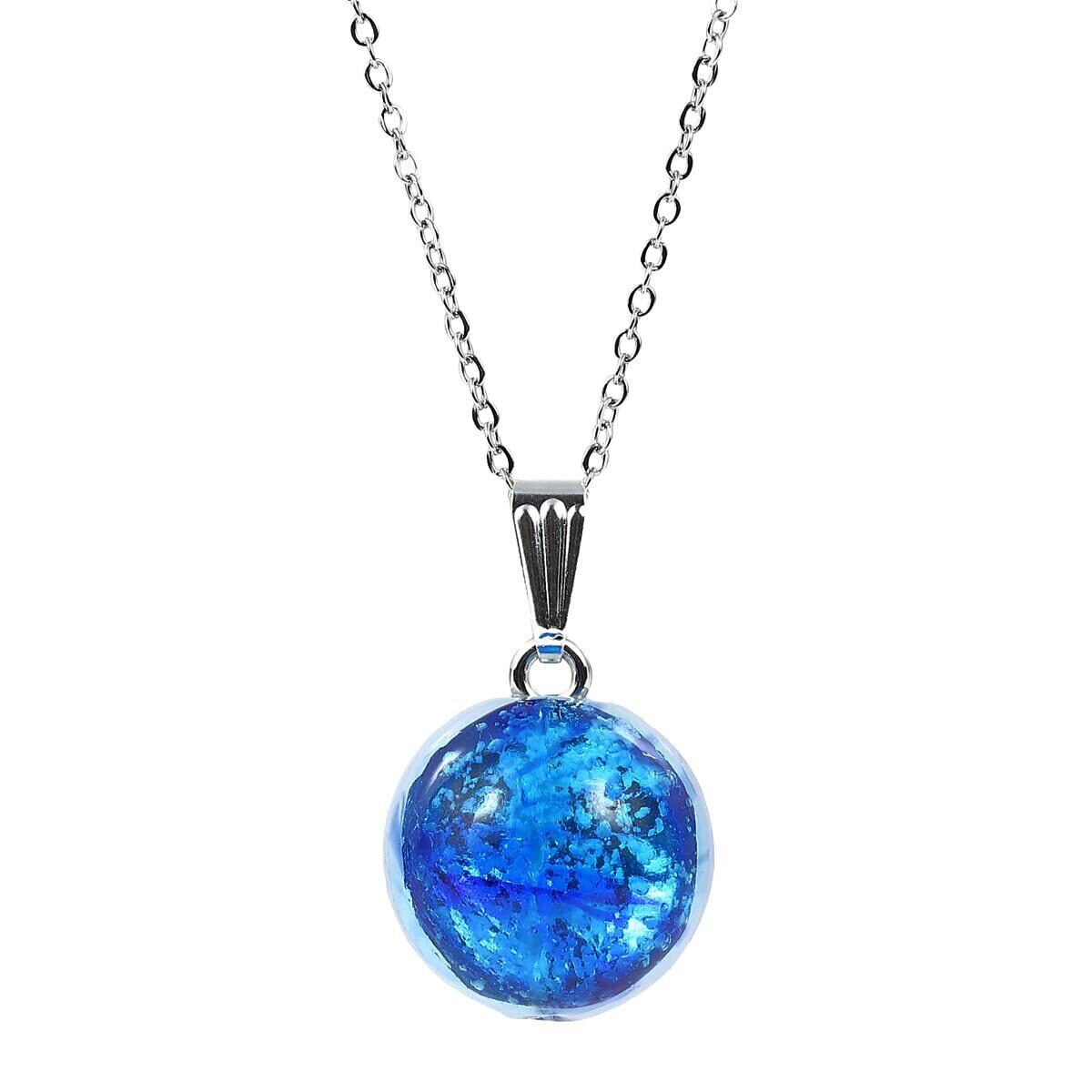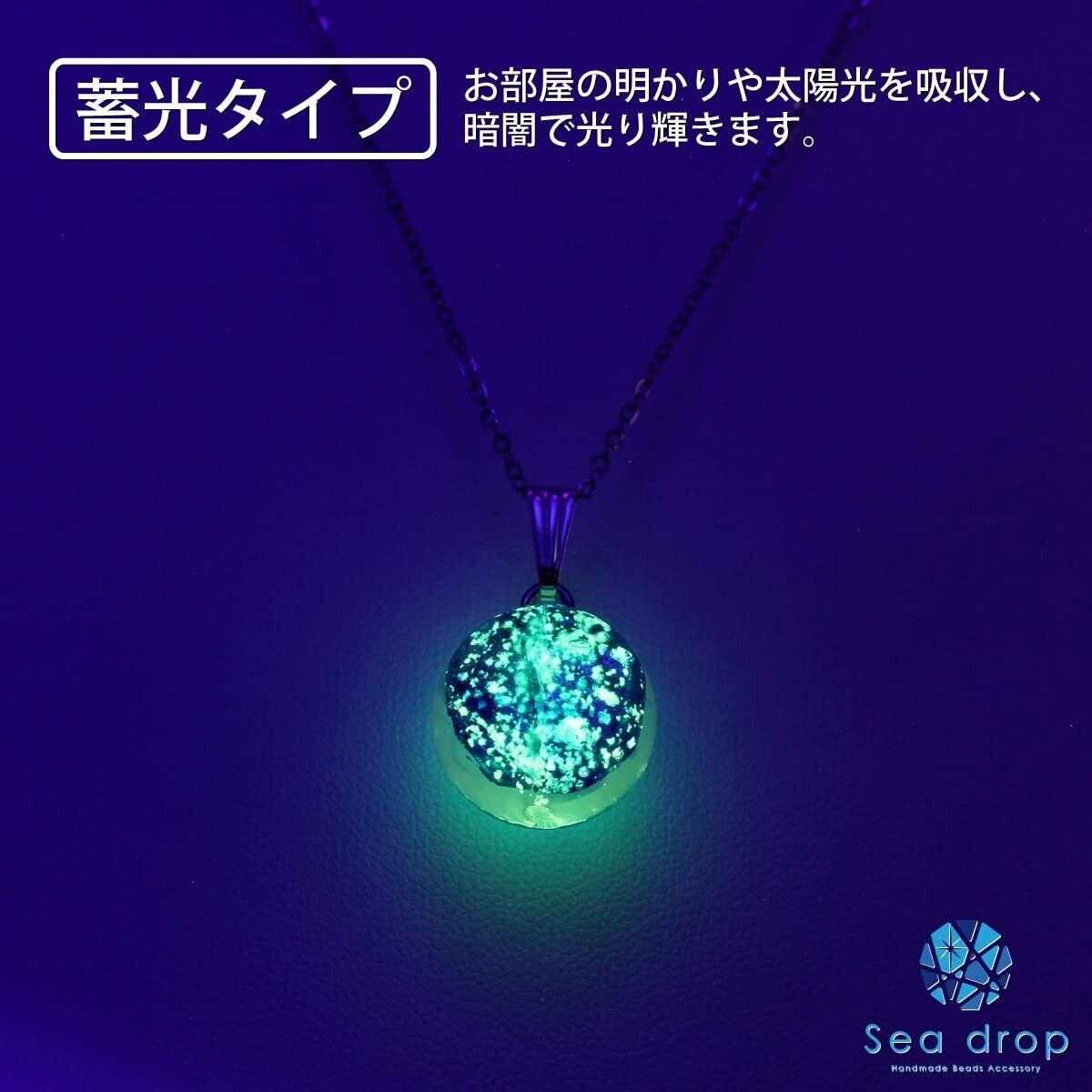 【商品仕様】 チェーン:ステンレススチール抗アレルギーチェーン シルバーカラー 40cm+5cm(アジャスター付) ホタルガラス:約12mm 蓄光タイプ (ミヤコマリン)