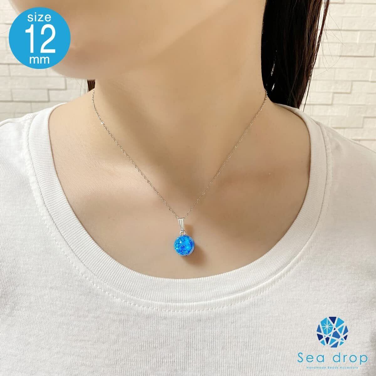 [Sea drop] 光る ホタルガラス ミヤコマリン ネックレス 蓄光 とんぼ玉 ステンレススチール抗アレルギーチェーン レディース シルバー [166nt-s]