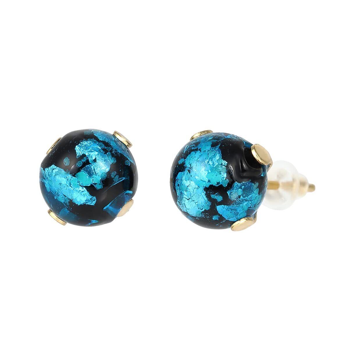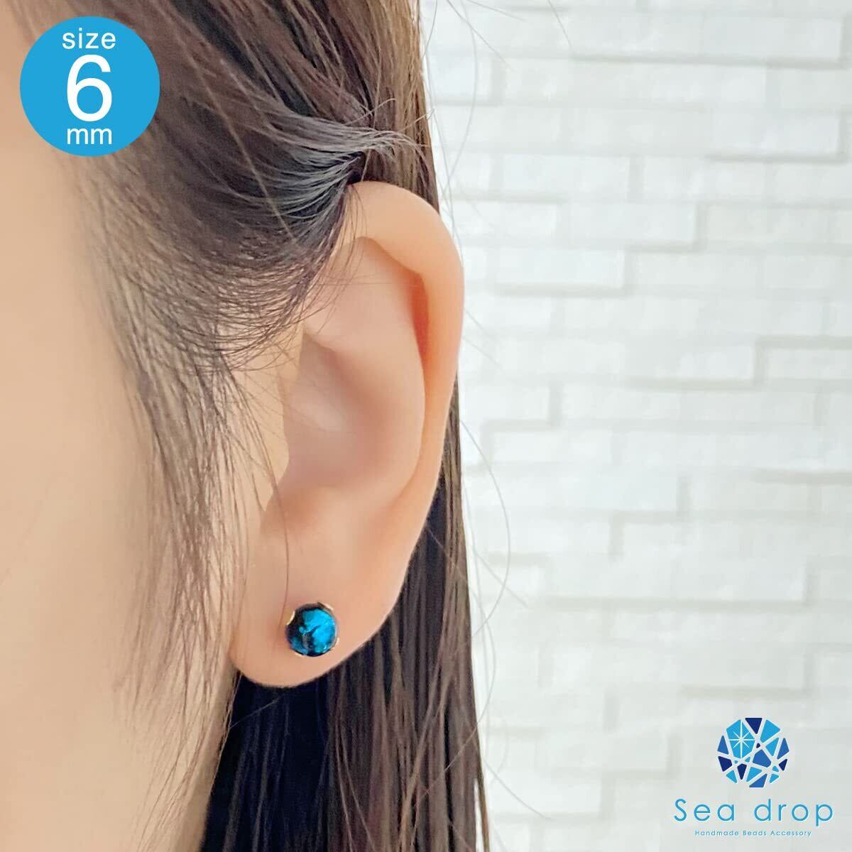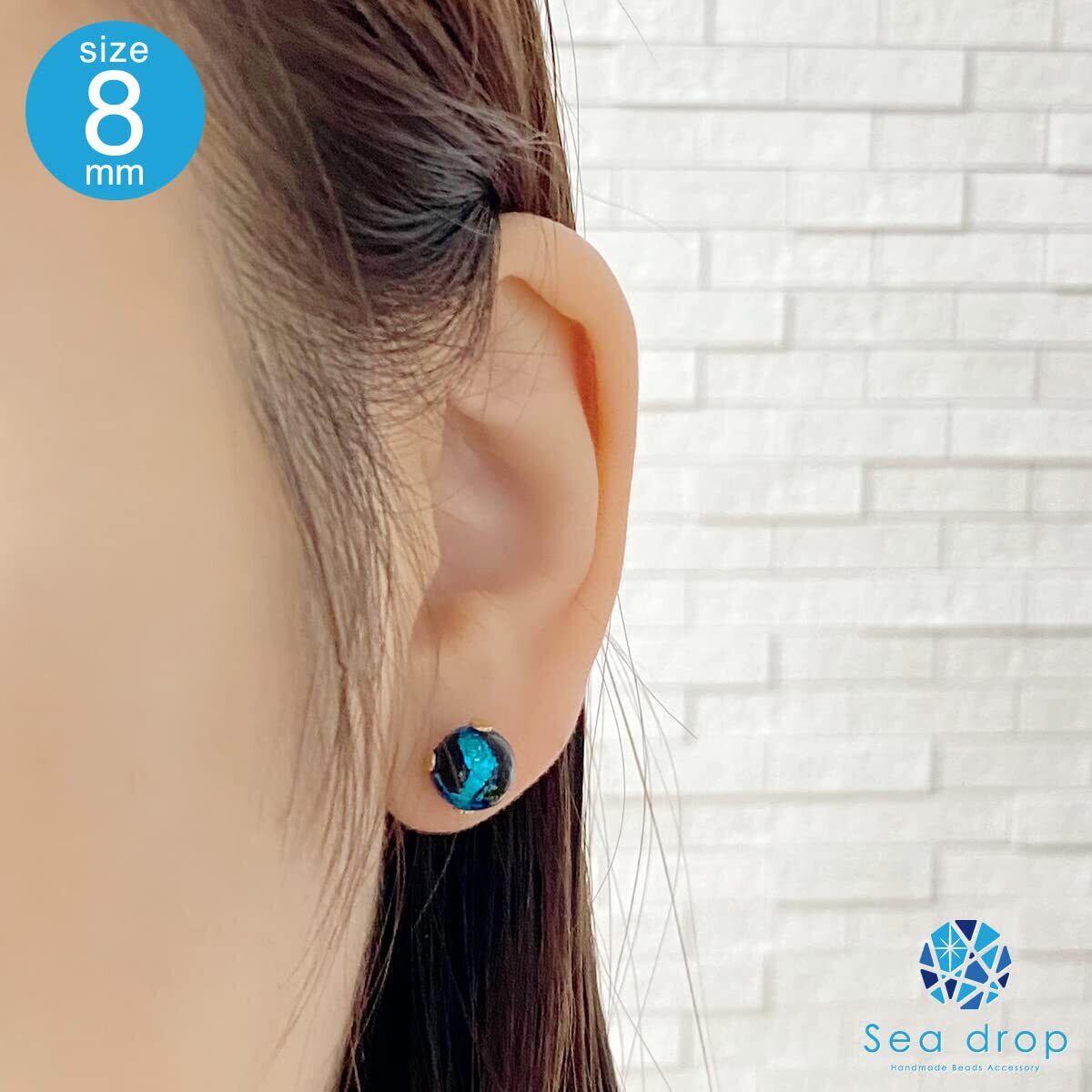 Sea drop 光る ホタルガラス スタッドピアス ブルー 蓄光 レディース ステンレス 金属アレルギー対応 両耳用 ゴールドカラー [160et-g]