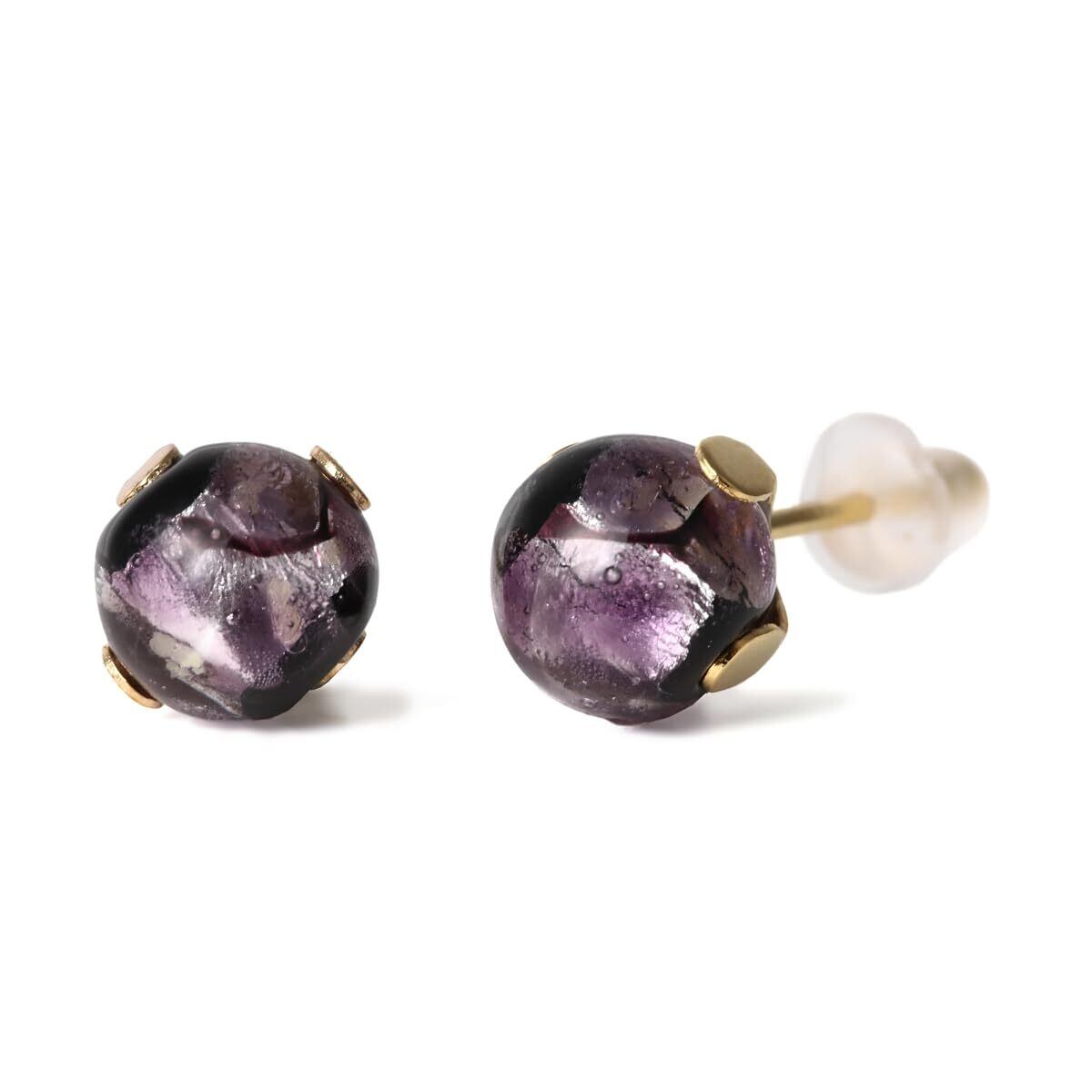 Sea drop 光る ホタルガラス スタッドピアス パープル 6mm 蓄光 レディース ステンレス金属 両耳用 ゴールド シルバー [309et]