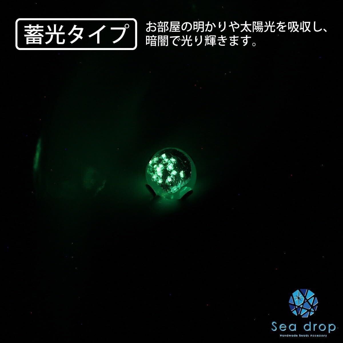 【商品仕様】 素材: エメラルドオーシャン ホタルガラス 6mm (暗闇で光る蓄光タイプ) 金具 ステンレス 金属アレルギー対応 (シルバーカラー)