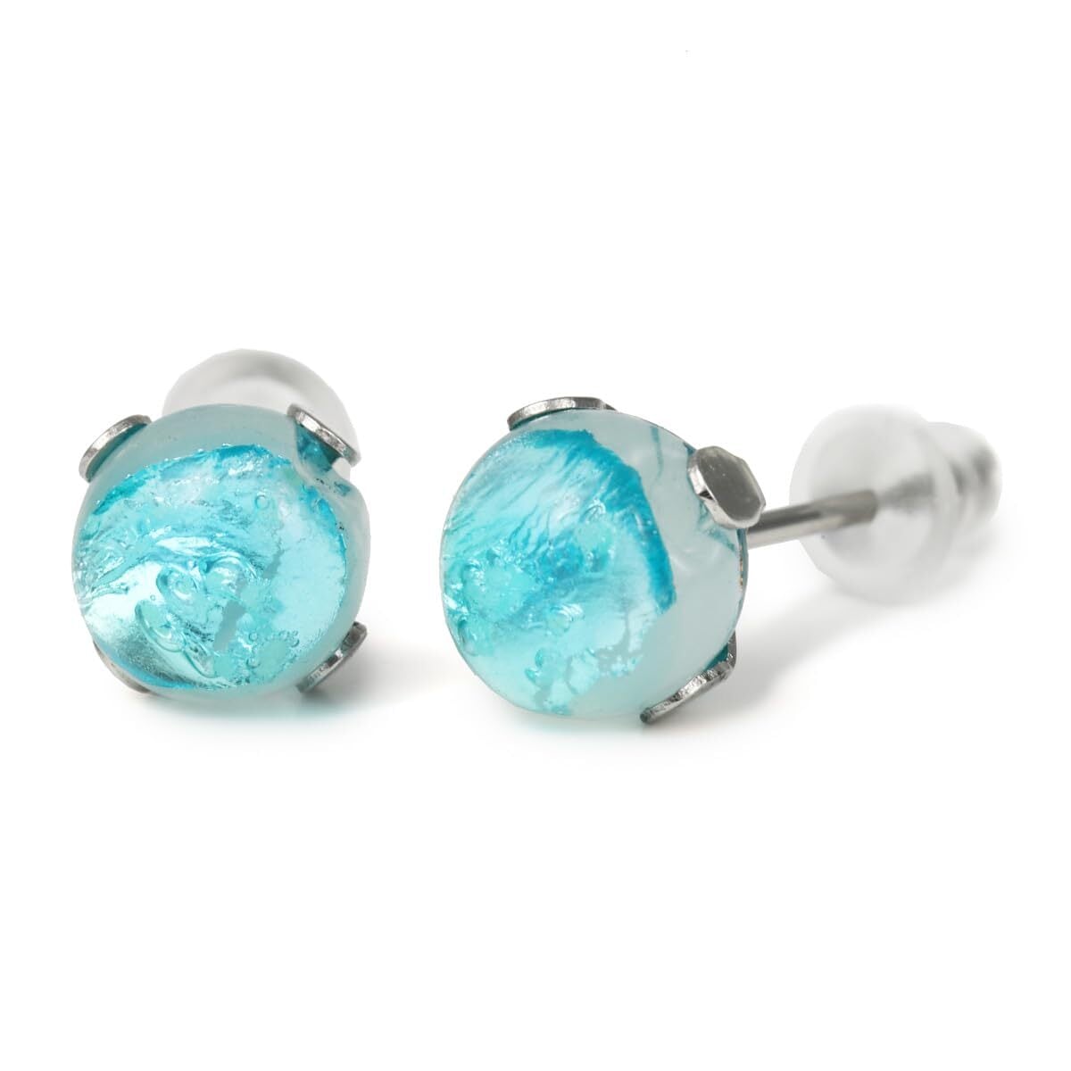Sea drop 光る ホタルガラス スタッドピアス エメラルドオーシャン 6mm 蓄光 レディース ステンレス金属 両耳用 ゴールド シルバー [285et]