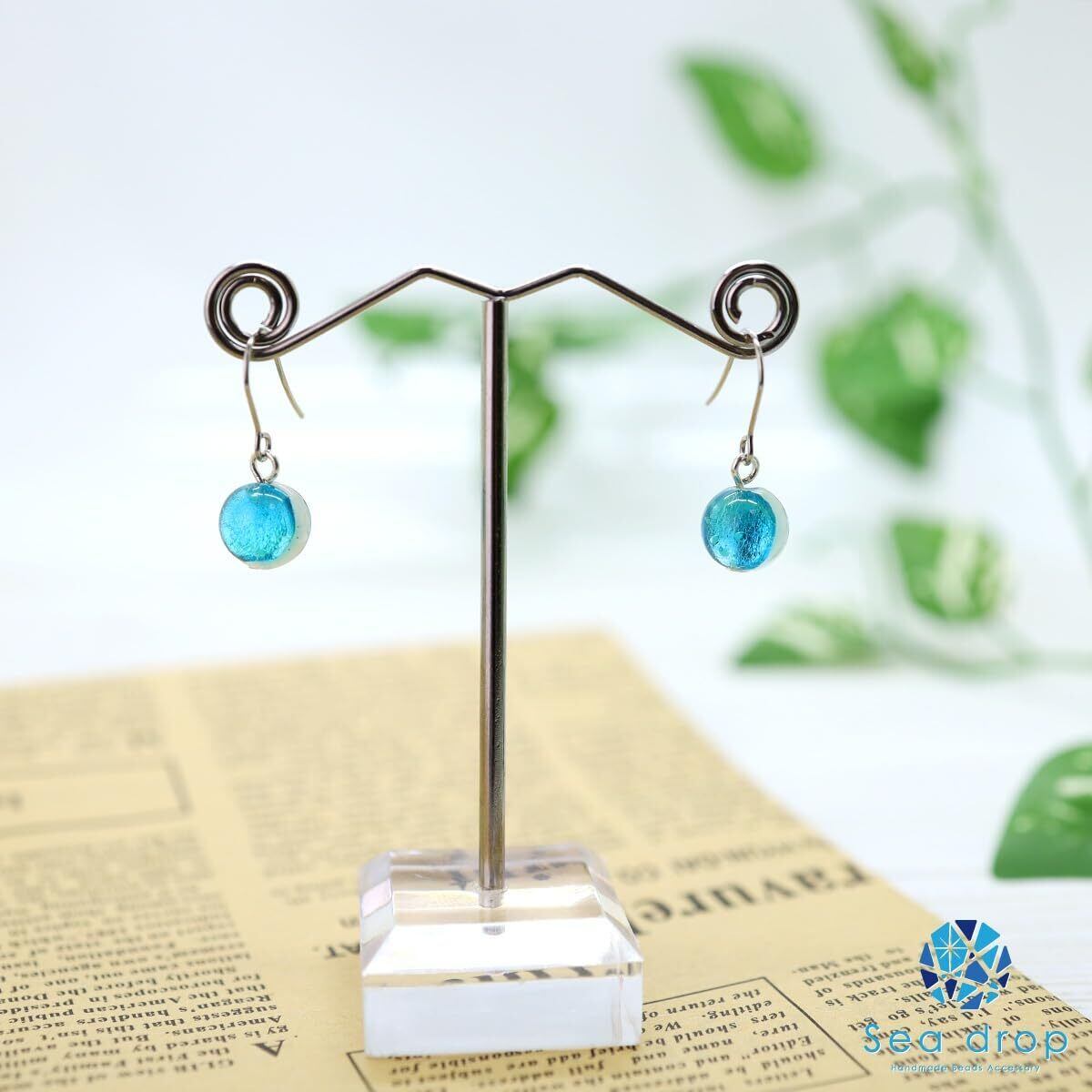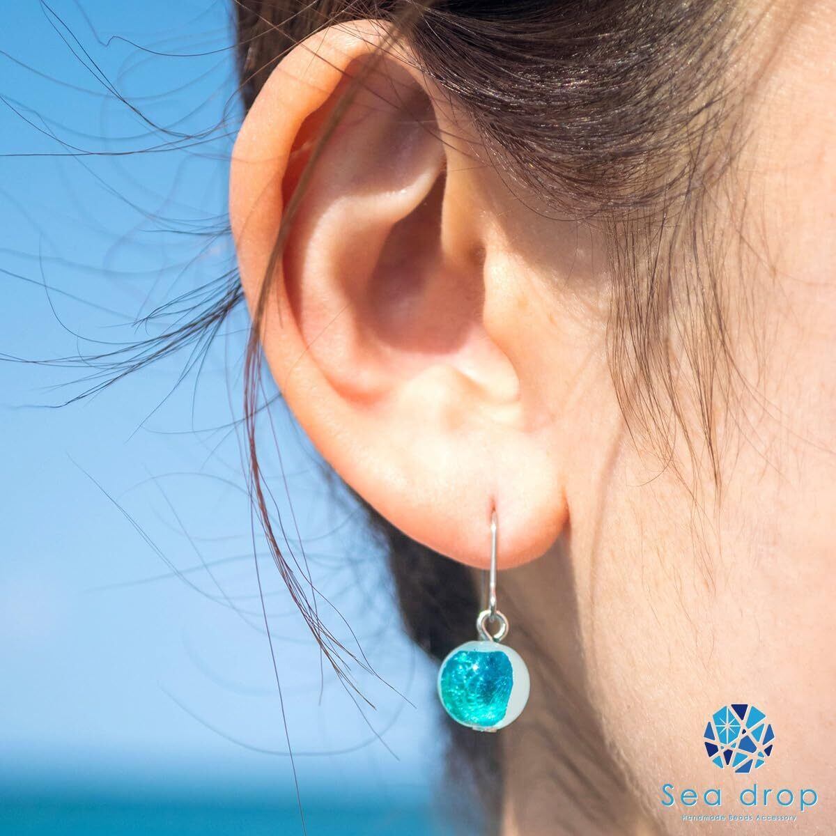【シードロップのホタルガラス「ピアス」】 ホタルガラスの鮮やかな輝きが魅力的なフックピアスは、熟練した職人しか製作できない貴重なガラス玉を惜しみなく使用。南国の海を感じさせる繊細な色合いが高級感を演出し、顔周りを明るくしてくれる上品なアクセサリーアイテムです。