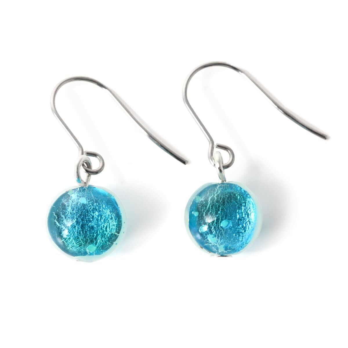 【商品仕様】 素材:ステンレス合金 ホタルガラス 10mm玉 エメラルドオーシャン ※ハンドメイドのためガラス玉の直径に1mm前後差がある場合がございます。