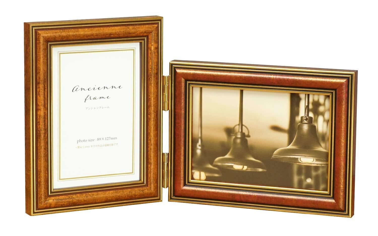 見開きでL判を2枚飾れるアンティーク調フレーム。