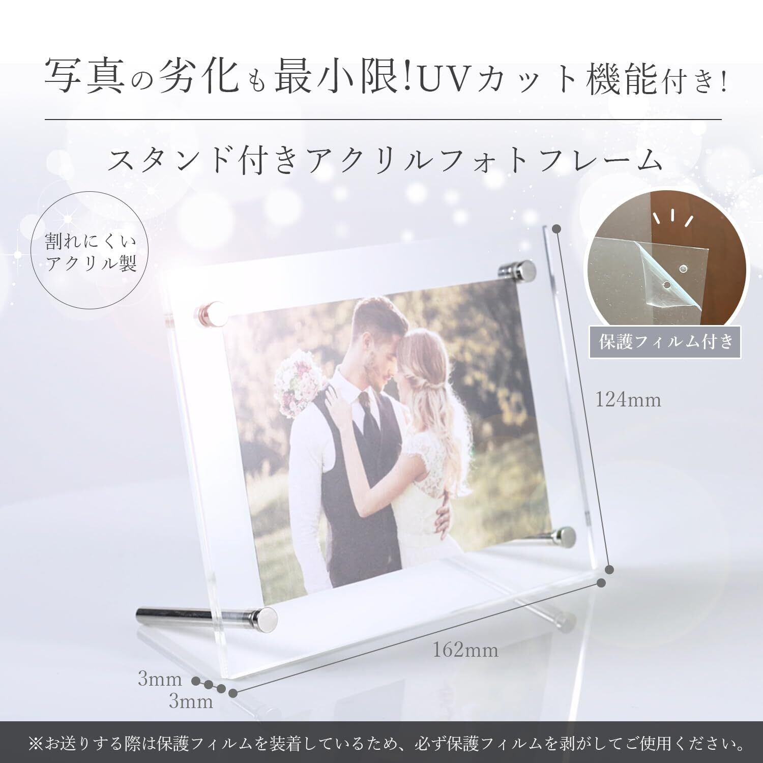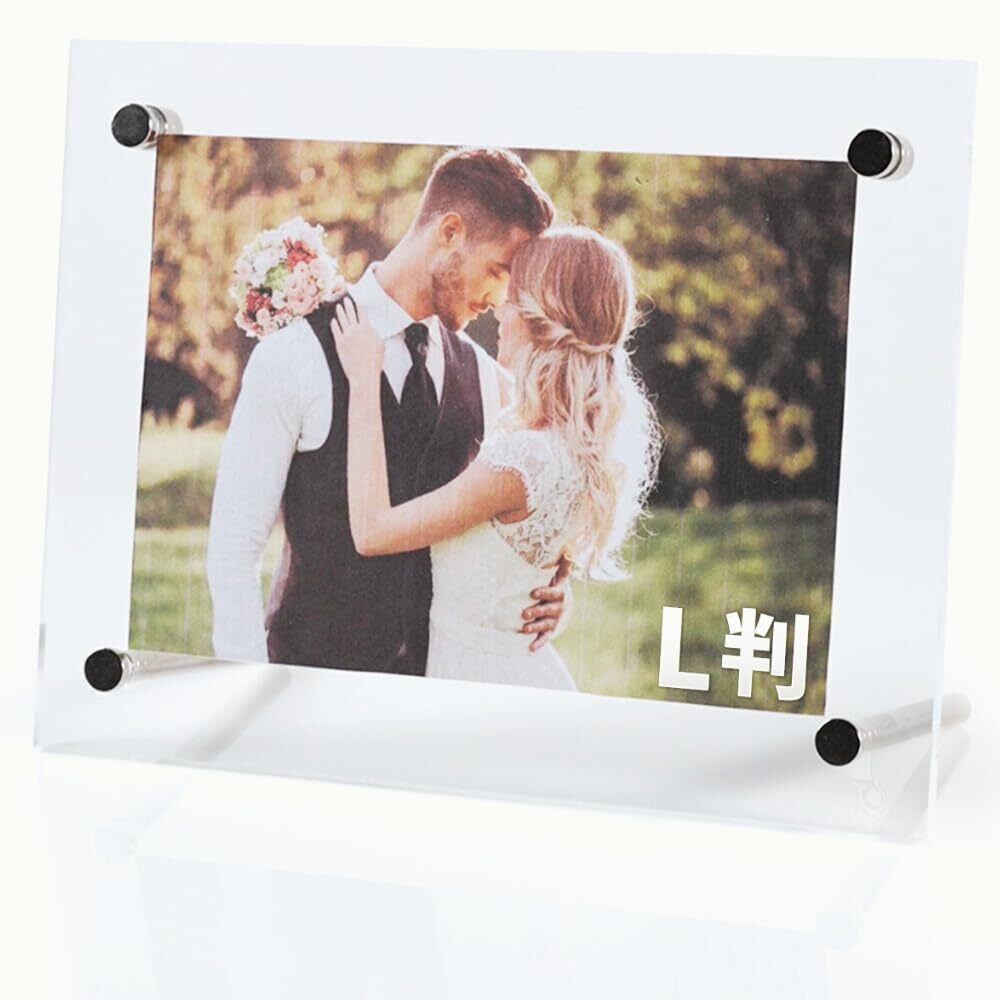 【限定】162mm×124mm L判用 写真立て フォトスタンド 1個入り マグネット 透明 クリア 両面使用可 ギフト 低反射 プレゼント 記念日 写真 展示 ディスプレイ おしゃれ ※保護シールを外して使用 (クリア, L版スタンド付)