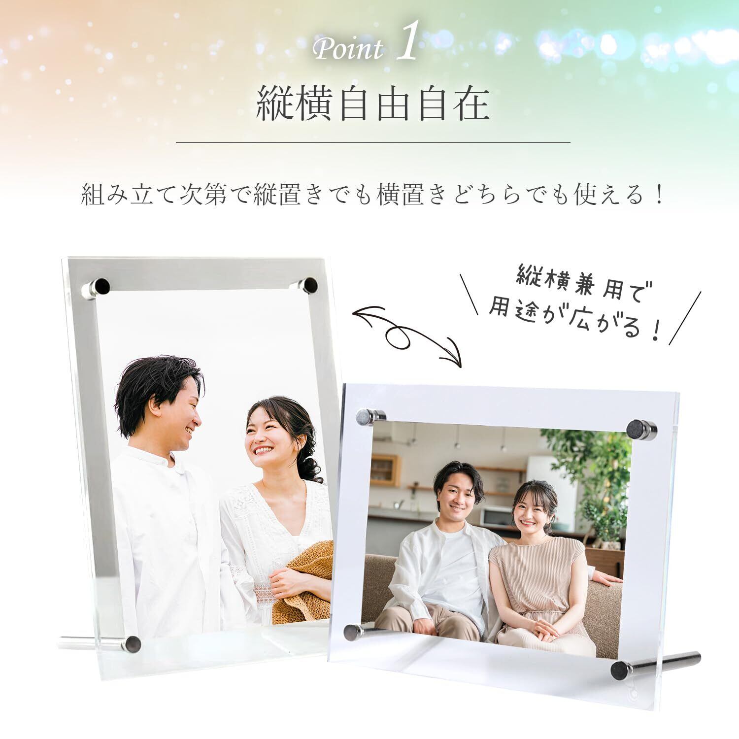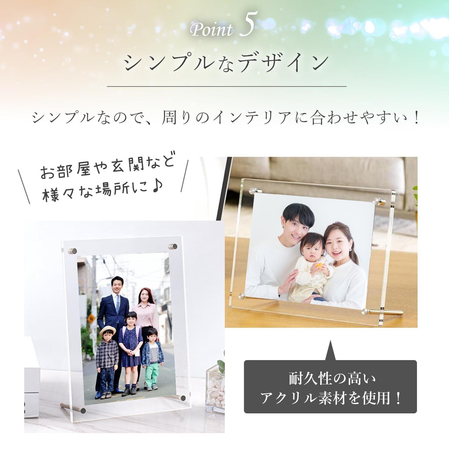 【多様な使用用途】家族写真や記念写真はもちろん、ネットプリントしたイラストやカレンダー、カードなどお気に入りの1枚をきれいに飾ることができます。また、両面透明で縦・横置き兼用なので、様々なコーディネートが可能です。