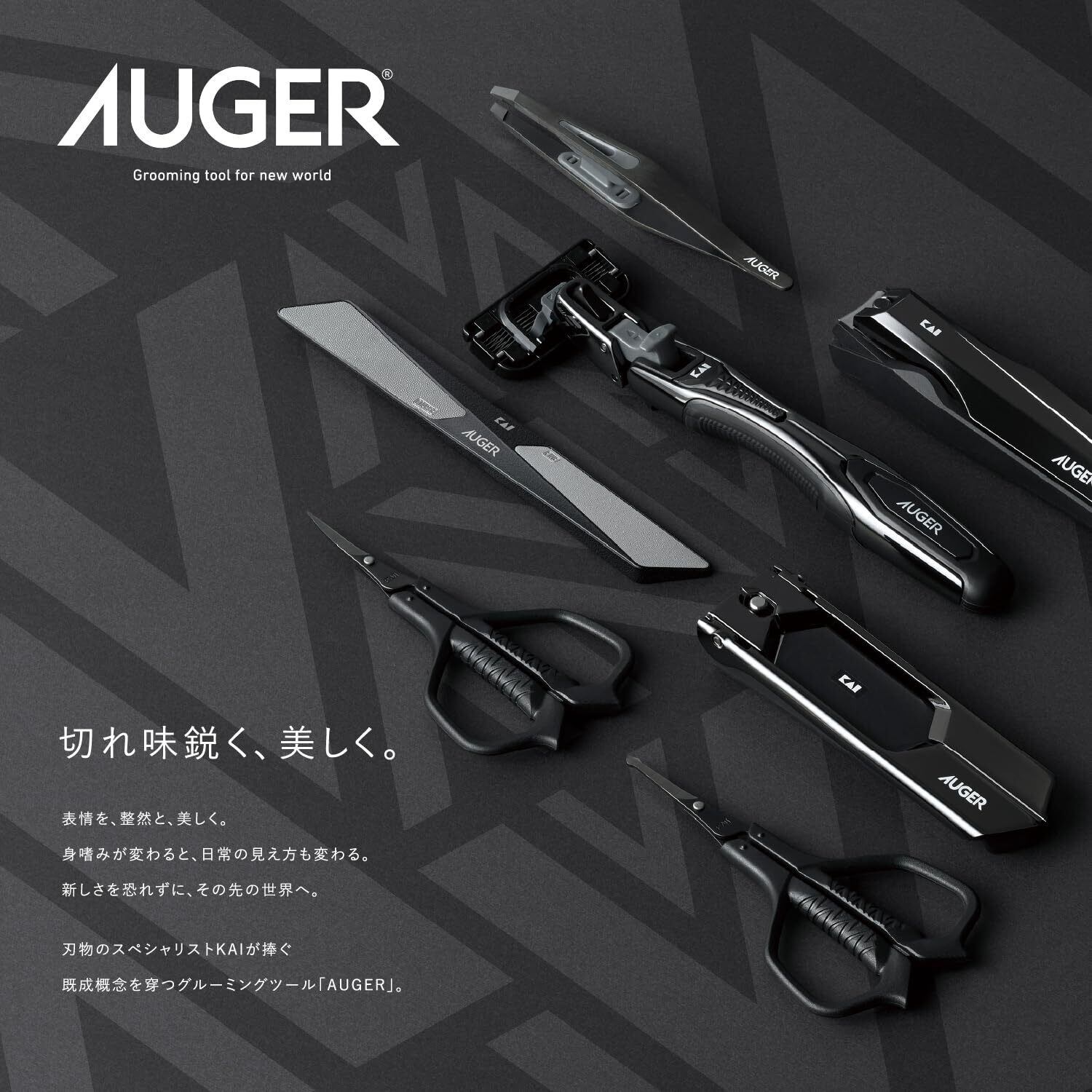 クシ部はハサミと一緒に使いやすい凹R形状。・ハンドル後端はAUGERブランドのデザインランゲージである ”A”をモチーフにした設計。