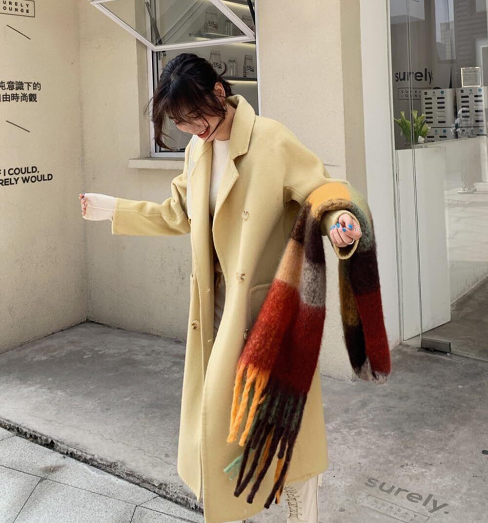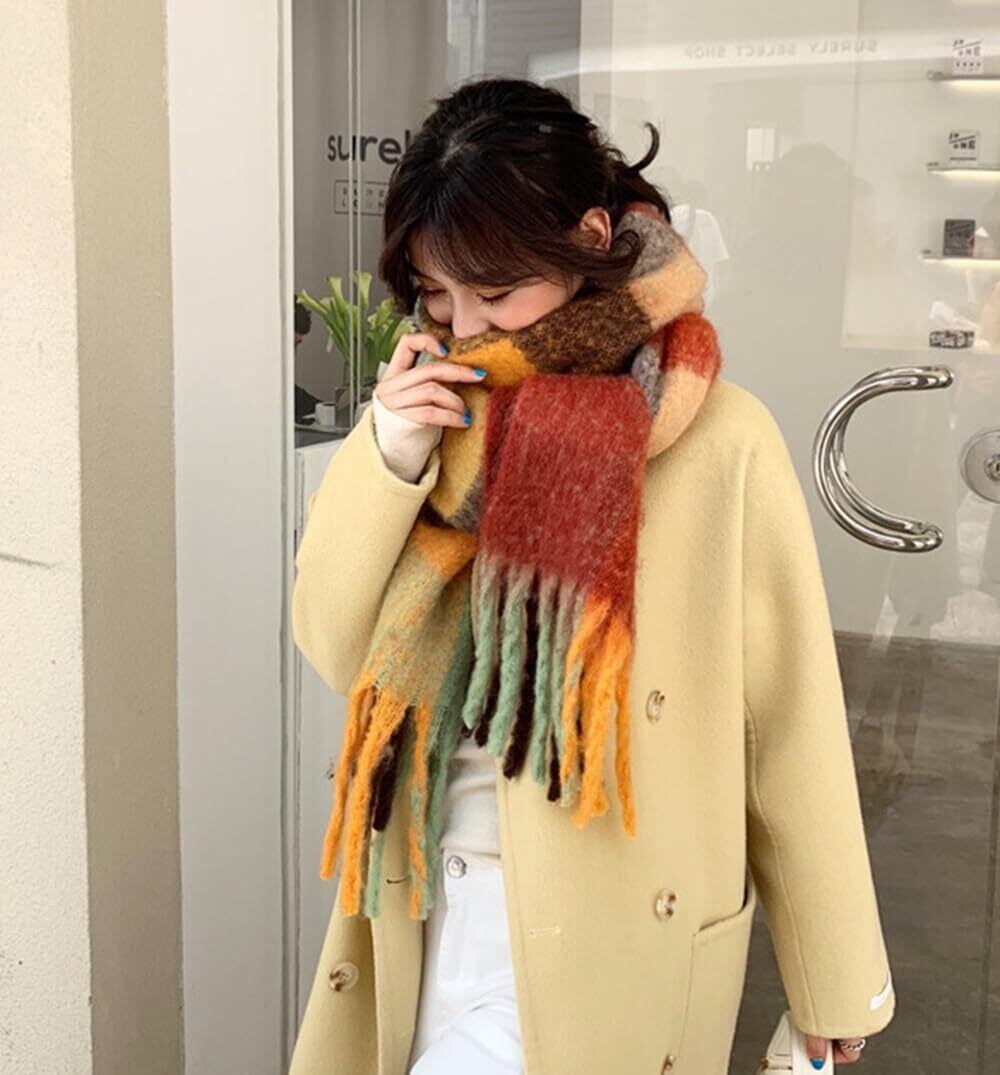 フリンジデザイン: 両端にフリンジが付いており、おしゃれなアクセントを添えています。