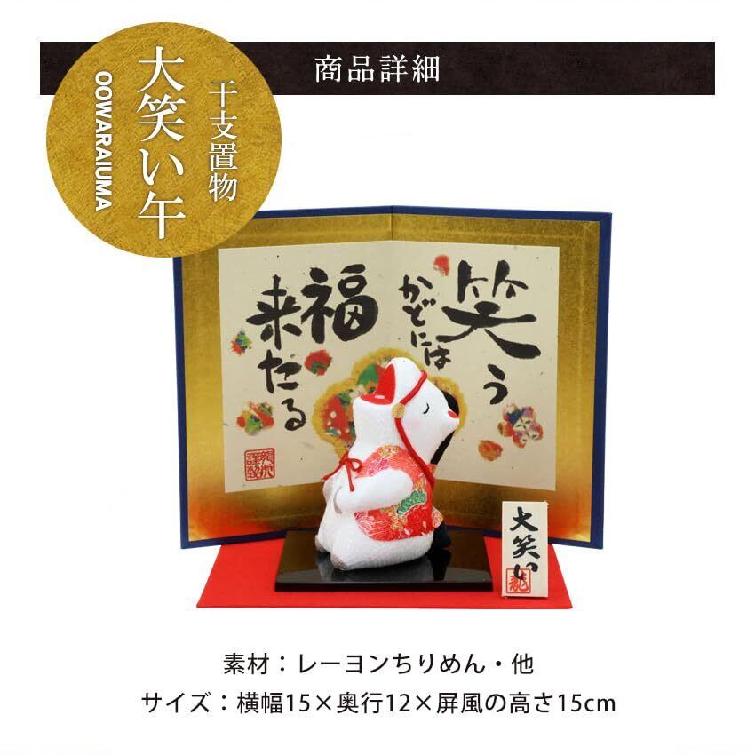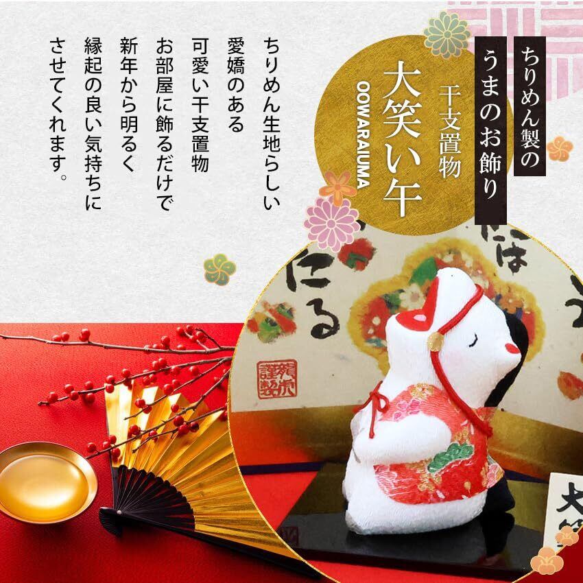 大阪長生堂 干支飾り 干支置物 午 馬 ウマ うま 十二支飾り 正月飾り ちりめん オリジナル木札無料特典付(別送) 大笑い午(大)