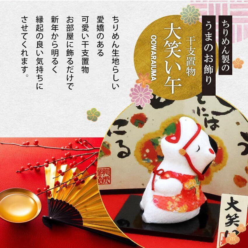 大阪長生堂 干支飾り 干支置物 午 馬 ウマ うま 十二支飾り 正月飾り ちりめん オリジナル木札無料特典付(別送) 大笑い午(小)