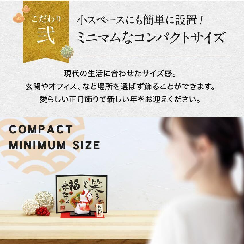 正月飾りとは、その年の歳神様を迎え、祭るために整えるものです。一般の家庭では、飾り付けは12月27日位から始めます(29日は「苦を待つ」につながり、31日は「一夜飾り」になる為この日に飾るのは縁起が悪いといわれています)。古来より午(馬)は生後すぐに走り出すことから立身出世や幸運を招く動物として人々から尊ばれてきました。どんな道も恐れずに駆け抜ける姿は苦難を乗り越える力強さを感じさせ発展と向上の一年となるようにとの願いが込められています。