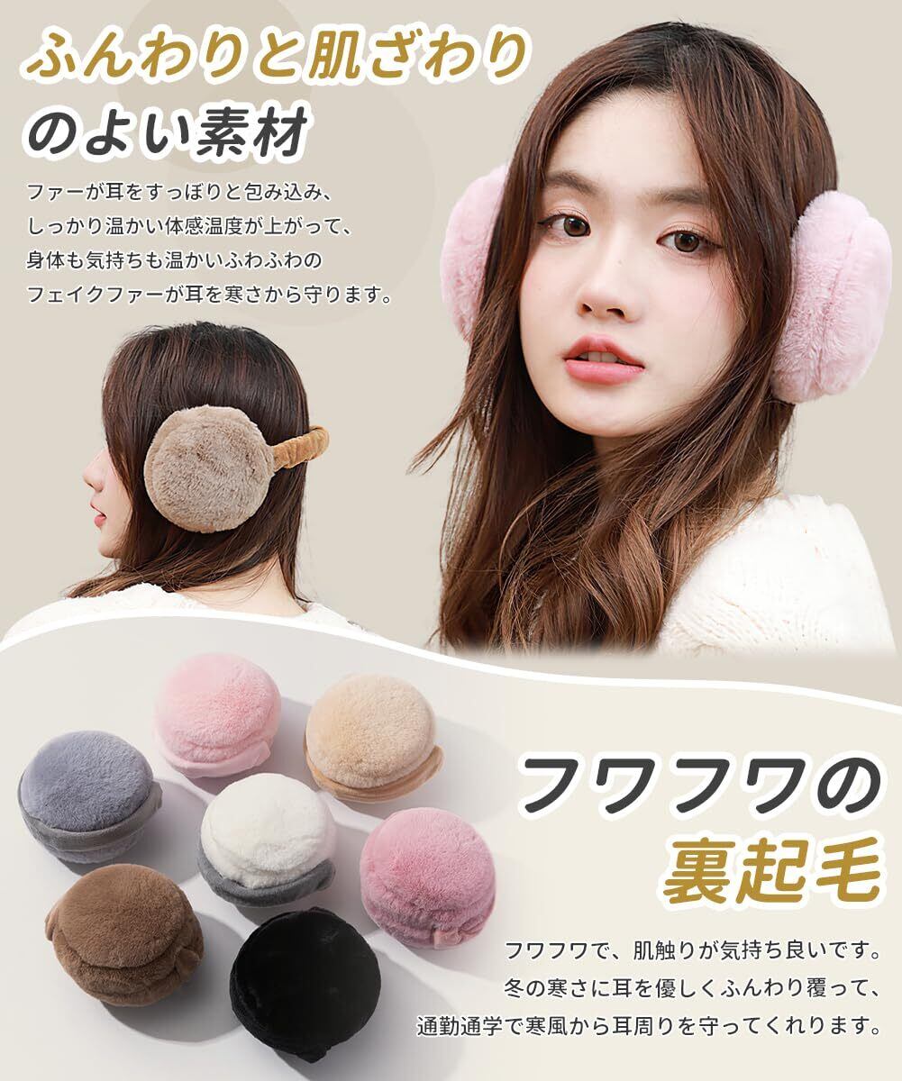 【サイズ調整可能・耳が痛くない】イヤーウォーマーのマーム部分には柔軟なスライドレール式骨組みを採用し、頭の大きさに合わせて40cmから最大45センチまで伸ばすことが可能です。このイヤーマフはほとんどのアジア人女性に適しており、頭の頂部あるいは後部にも掛けられます。ふわふわのイヤーマフに輪郭をつけることでスタイル良く仕上げています。また、イヤーマフの内側にはとても柔らかくし、耳に締まらず、耳に対する圧迫感を軽減、長時間の着用でも痛くありません。