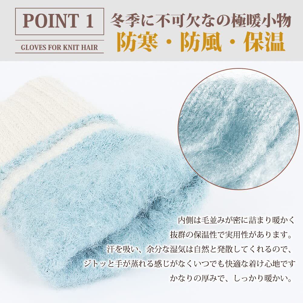 【上質な素材を使用】 里側の柔毛は柔らかくて快適で、肌にやさしくて刺激がありません。肌触りが柔らかく快適です。外側のふわふわのニット素材は細かく編んで寒風を強く防ぐことができます。また手の形をフィットし、着心地がいい。幅広いコーディネートに合わせやすいです。