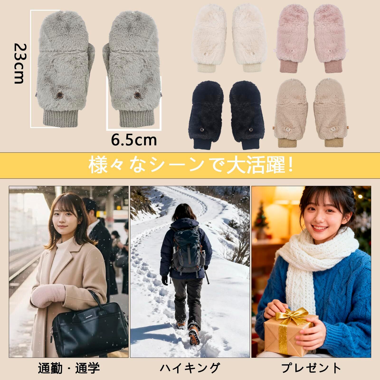 1、全体が厚手で超柔软な仿うさぎ毛フリースで覆われており、冷たい外気をしっかり遮断します。 2、肌触りが良く、軽い着け心地で、厳しい冬の寒さからあなたの手を守ります。 3、折りたたみ式のフリップキャップ。閉じれば冷えやすい指先まで包み込む「完全防寒モード」に。開ければ指先が自由になり、スマホ操作や細かい作業が可能な「タッチ操作モード」に。面倒な手袋の脱ぎ着なしで、状況に応じて即座に切り替えられます。 4、 自転車通勤(半指で操作、全指で防寒)、ジョギング、犬の散歩、雪遊び、買い物など、あらゆるアウトドアシーンに最適です。一本で二役こなす、機能性抜群のアイテムです。