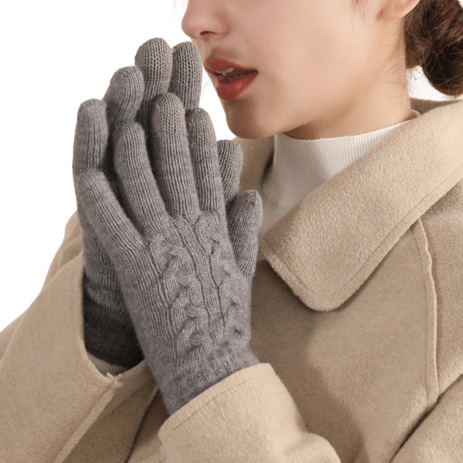 [Pawinpaw] レディース 冬 防寒 暖かい手袋【スマホ対応/ふわふわ裏起毛/厚手/柔らかい】 ニット かわいい 無地 防寒グローブ おしゃれ 通勤 自転車 バイク キャンプ 誕生日&クリスマスプレゼント 女性用