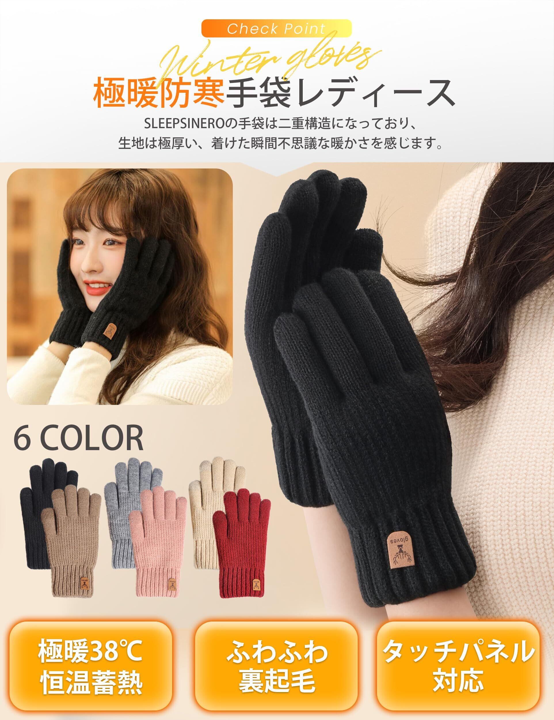 [SLEEPSINERO] レディース スマホ対応 冬 手袋 【指先まで裏起毛・360°蓄熱】 防寒 暖かい 保温 ふわふわ 厚手 防風 伸縮 柔らかい おしゃれ スマホ対応
