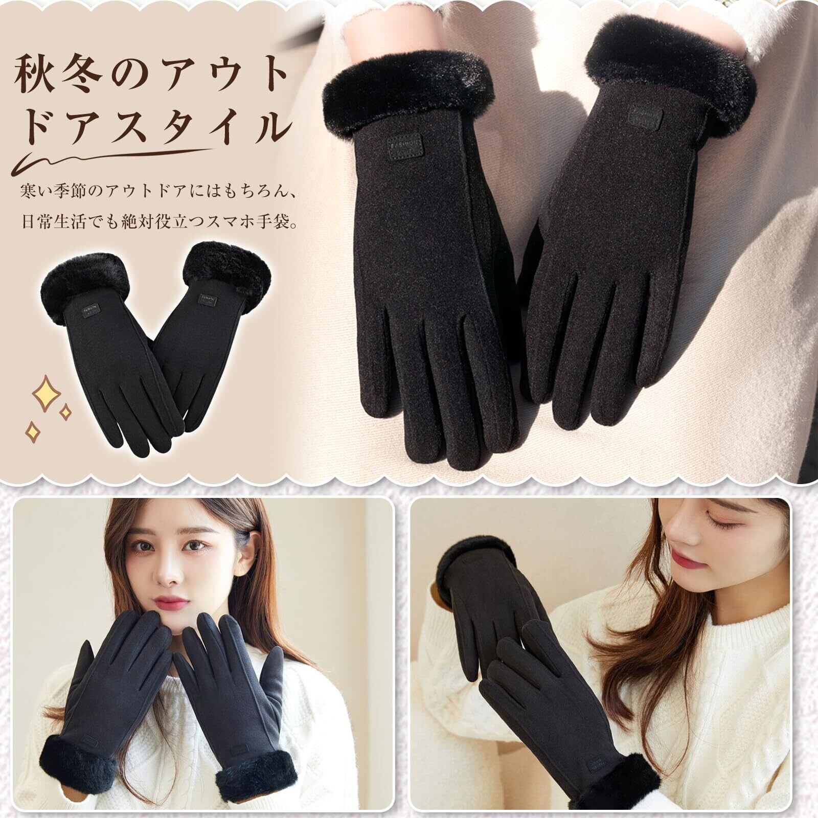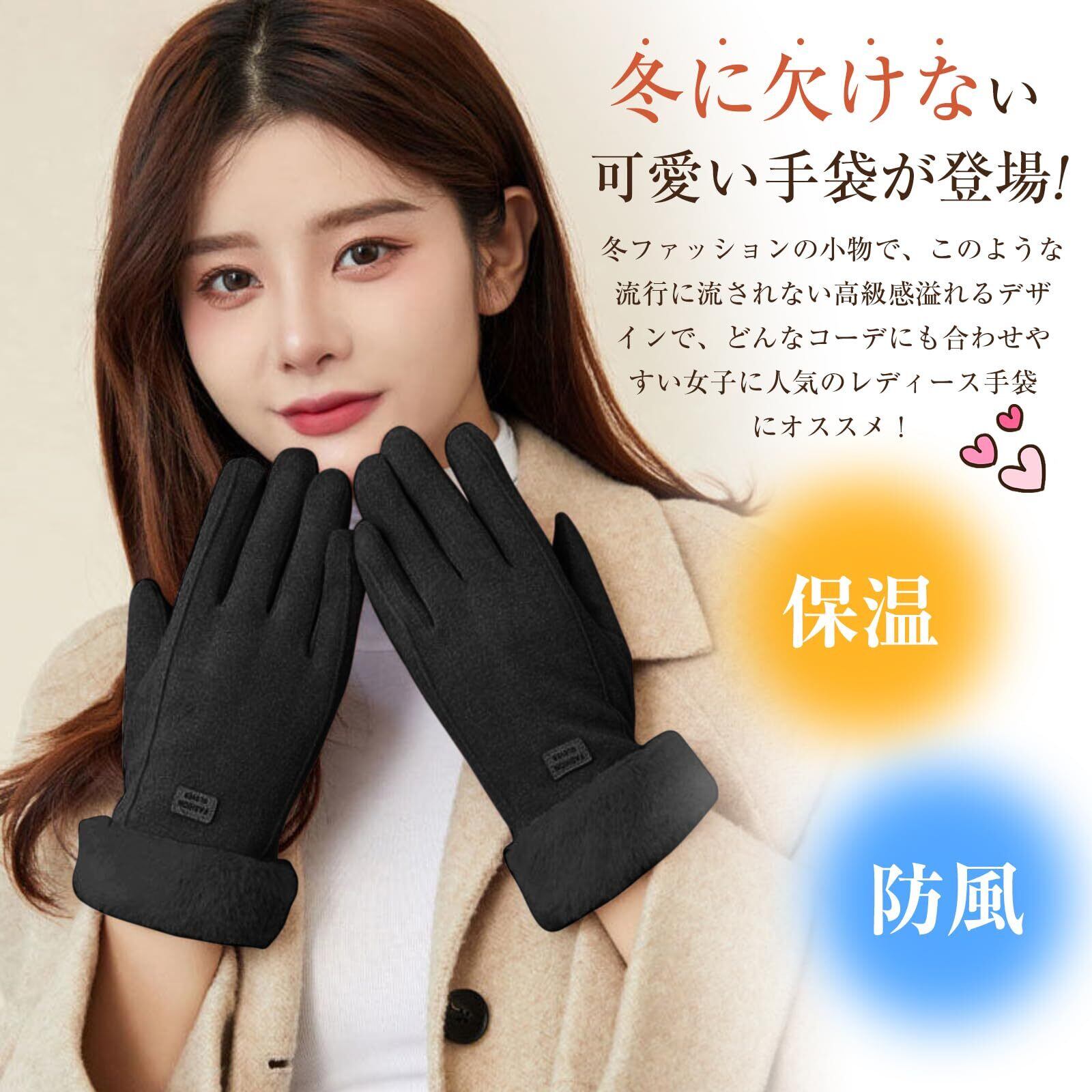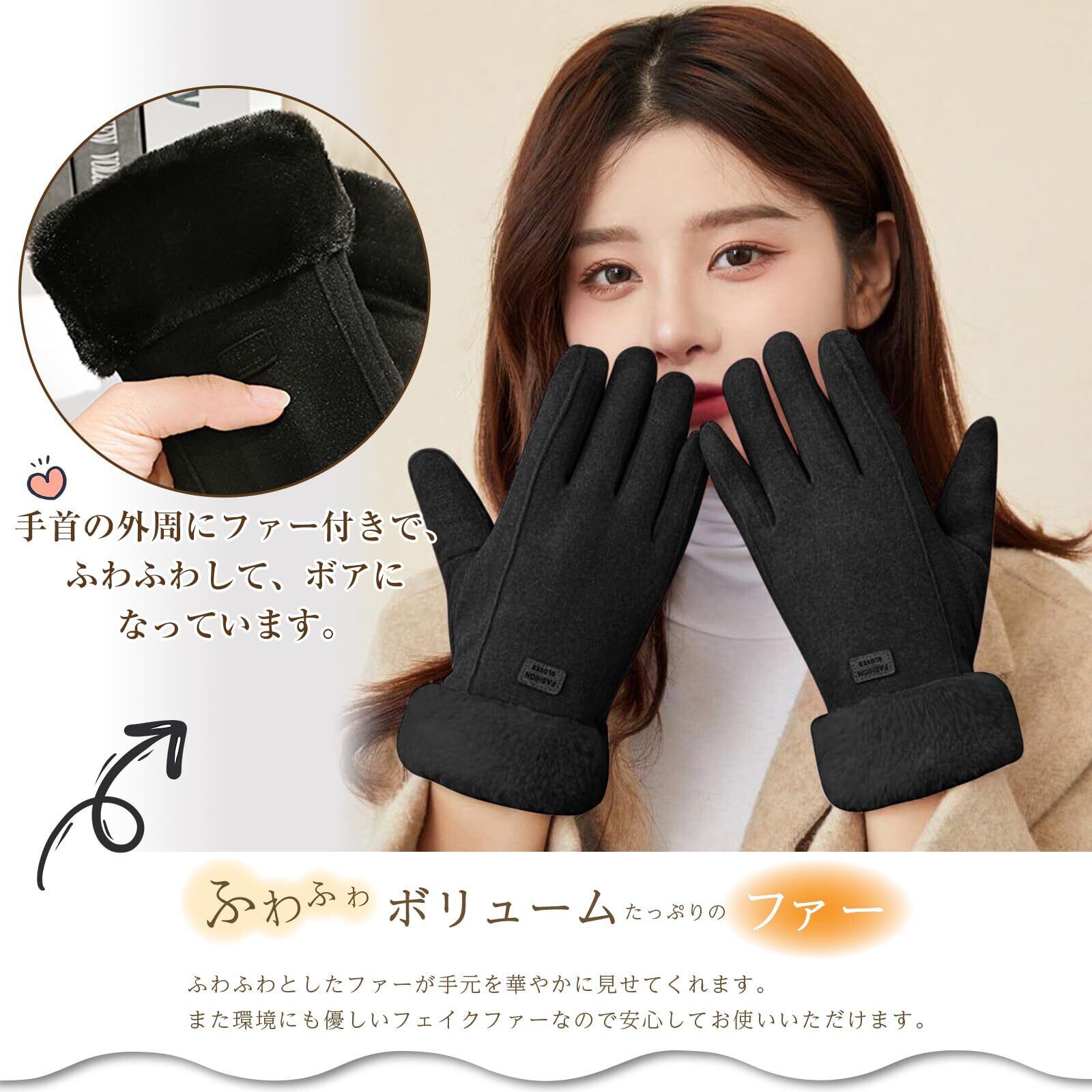 [AMOVO] 2024年ファー手袋 レディース タッチパネル対応 手首ファー付 ふわふわ 暖かい 裏起毛 通勤 通学 自転車 防寒 防風 女の子 五本指 グローブ