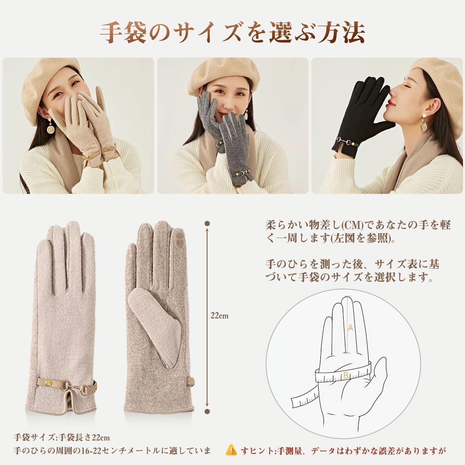 【高級感デザイン&上質なウール素材】レディース手袋は優れた保温性と肌触りの良さを兼ね備えています。裏に保温性に優れたウール素材を採用しており、暖かさを維持できるレディース手袋。天然繊維に優れた保温性と吸汗性が持っています、里側の柔毛は柔らかくて快適で、肌にやさしくて刺激がありません。独特で柔らかい肌触りで肌に優しくて、冷たい風から両手をしっかり守ります。そして撥水性があり、汚れにくい、型崩れしにくい特徴も持っています。手首の部分は革のリボンが飾って、元々普通な手袋を上品な雰囲気が溢れる。